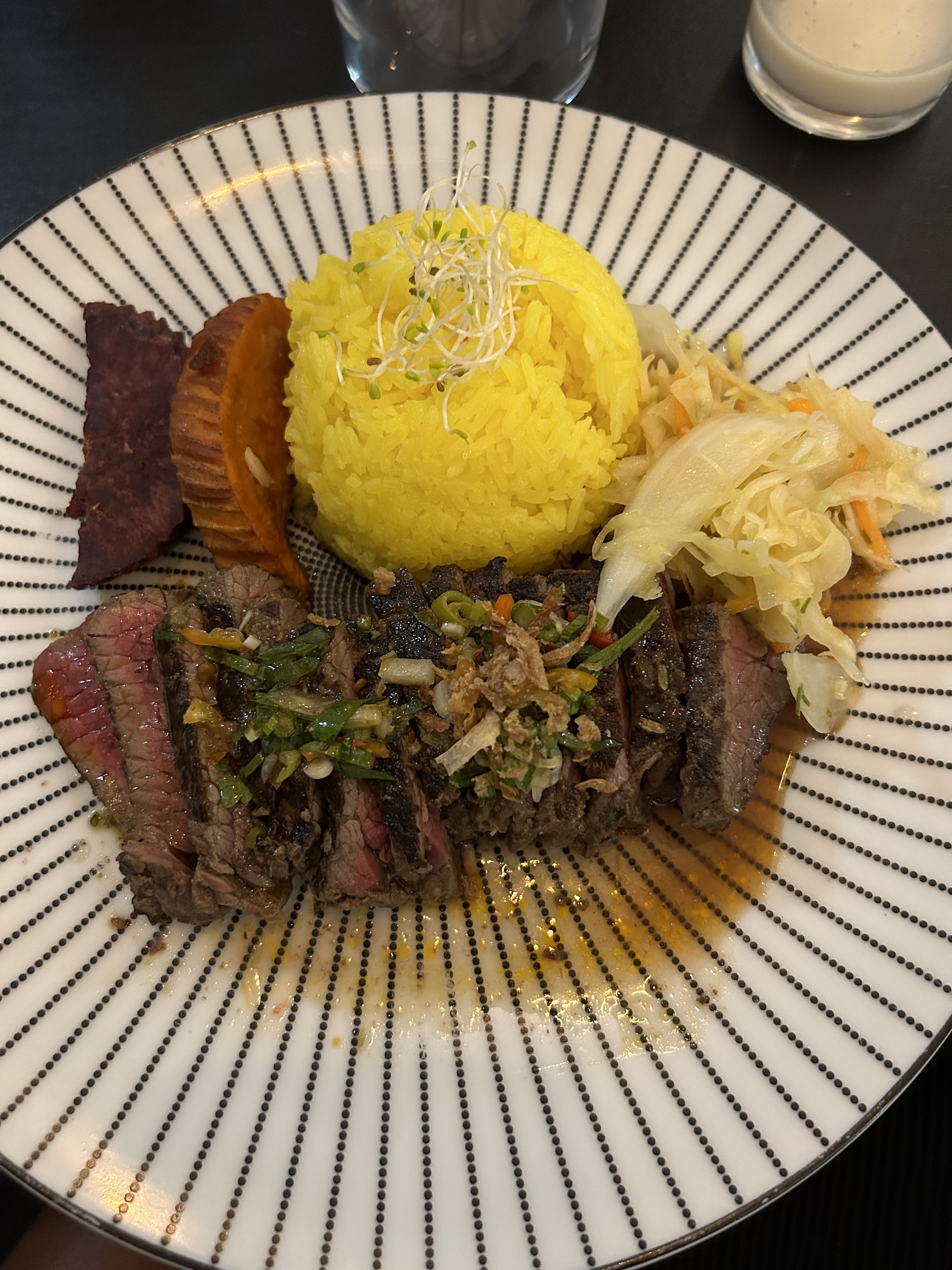 Le steak était très bien cuit mais je trouvais que ça manquait un peu de sauce, d’épices. C’est vrai que je connais pas bien la cuisine caribéenne donc je ne savais pas forcement à quoi m’attendre.