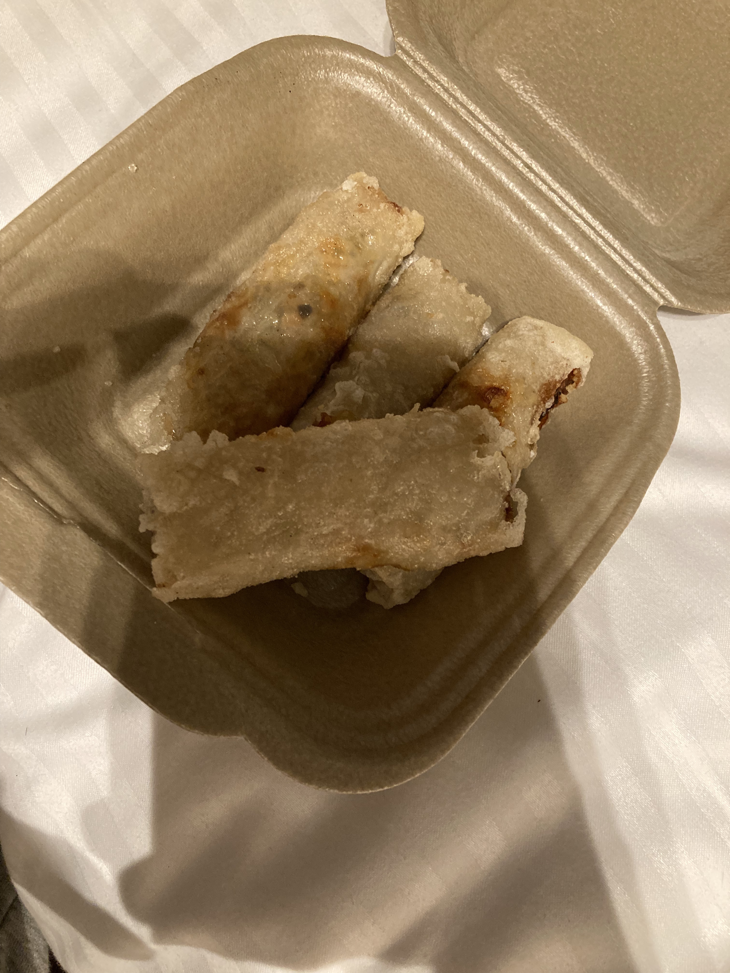 Commande par deliveroo... Nems froids et Bo bun éthiopien ! 2 fourchettes de vermicelles, un peu de salade, une tranche de tomate... Je conseille à ceux qui souhaitent faire un régime hypocalorique !