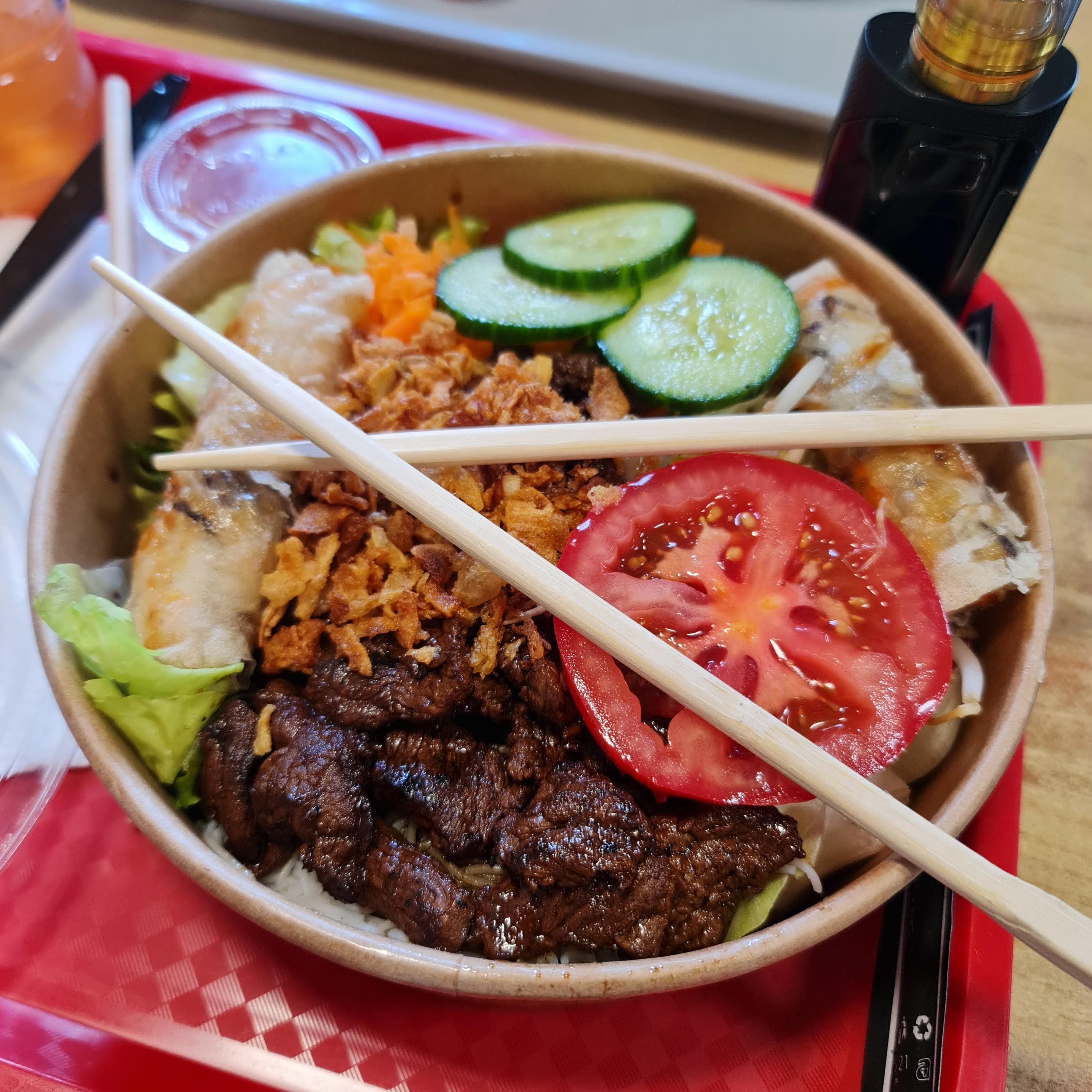 Le pire bo bun de ma vie!! Si on peut appeller bobun a quelques vermicelles de riz avec une sauce forte et salée de wok chaude avec salade qui devienne chaude aussi dans une piscine de sauce..les nems pas bons du tout...plus jamais