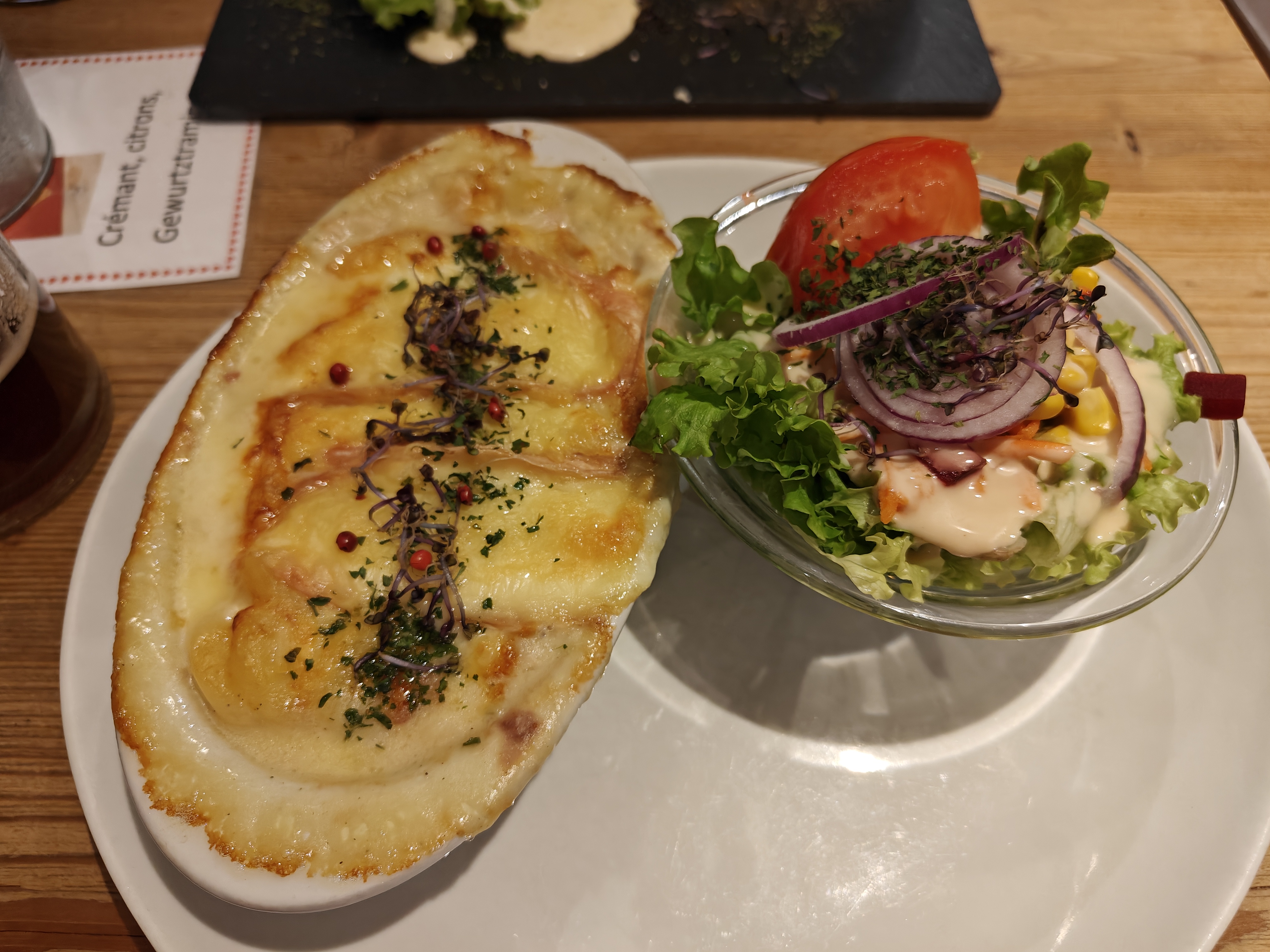 Le gratin de spaetzles était excellent! Poêlée alsacienne et choucroute correctes. Je trouve dommage que certaines personnes mettent des avis négatifs, simplement parce qu'elles ont été refoulées à l'entrée faute de tables libres...