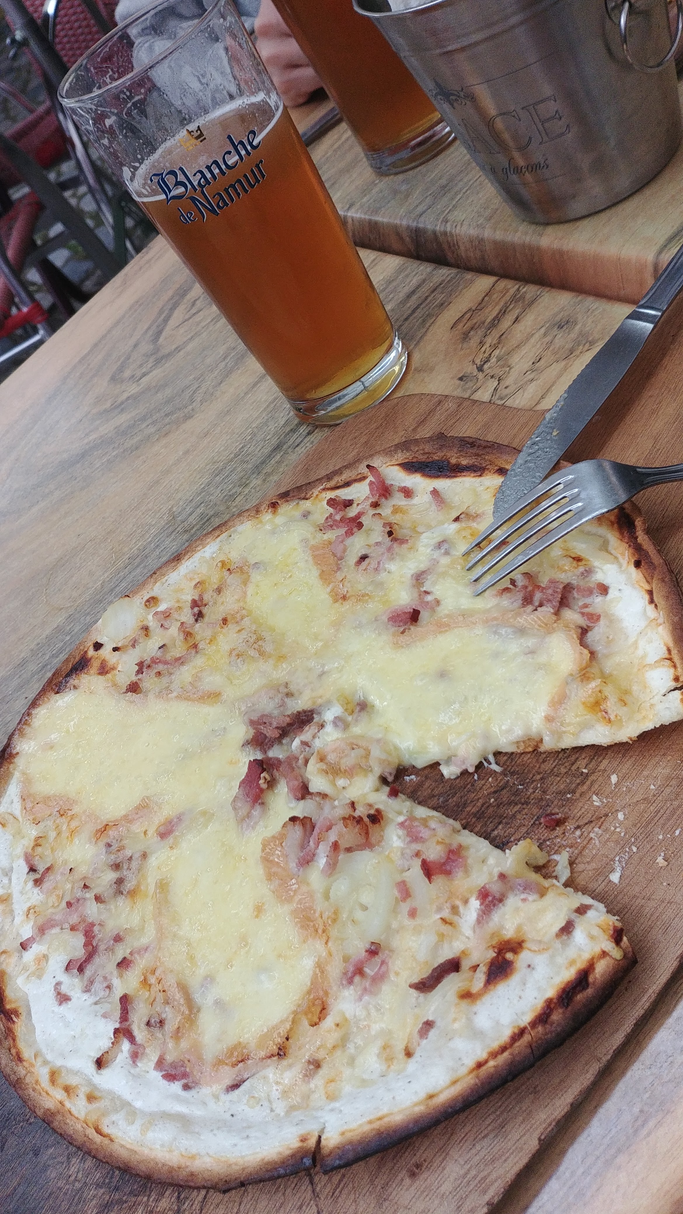 Mon diabolo était mauvais il n'y avait plus de bulles. Le coca de la table de derrière pareil. Nous avions commandé 2 tartes flambées, 1 chèvre et 1 gratinée. On nous a donné 1 munster disant qu'on avait commander cela. On met 3h a avoir l'addition. Les serveurs sont mal aimable et les plats très moyens. Plus jamais.
