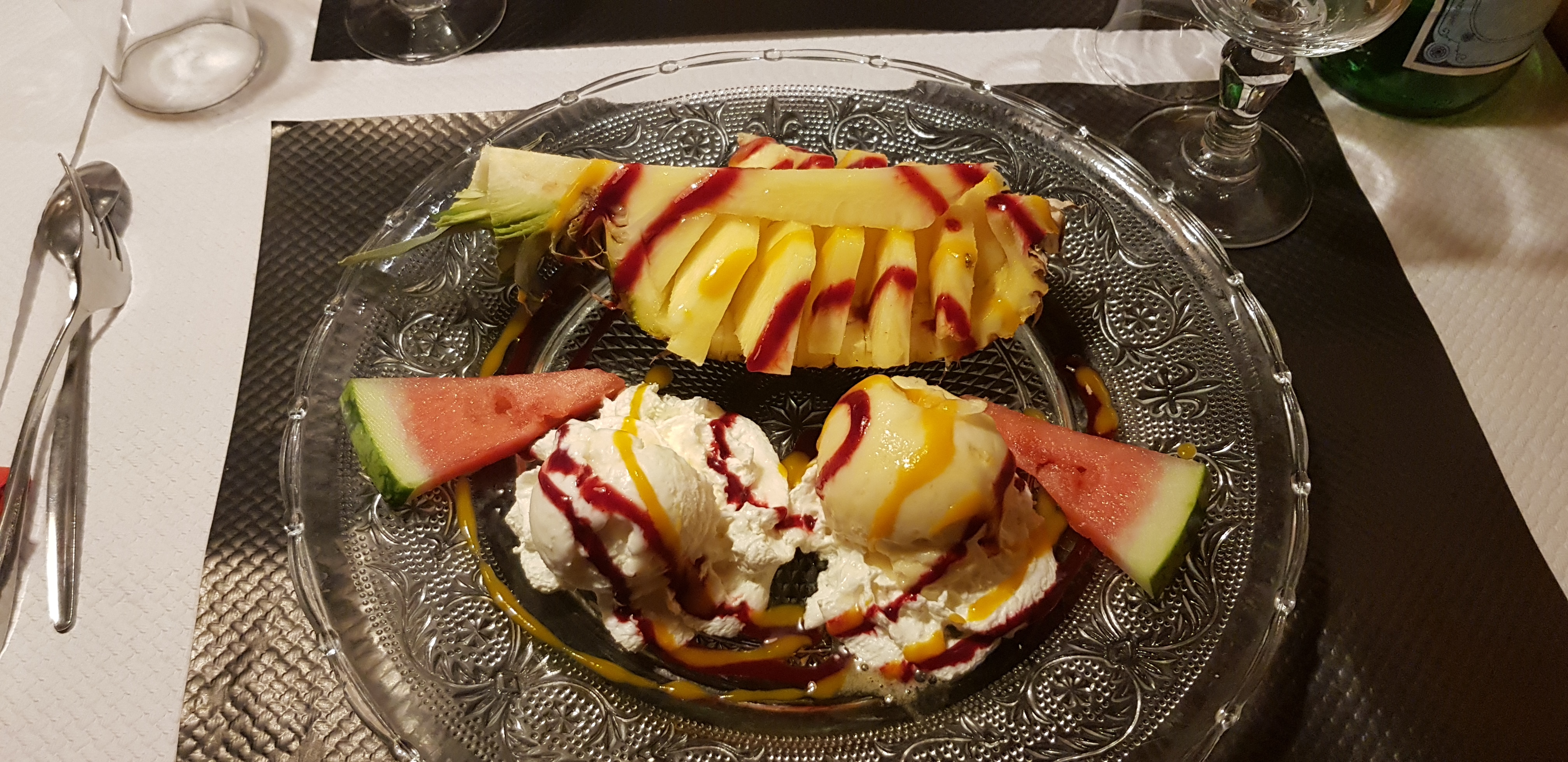 Super on a trop bien manger et la serveuse étais niquel aussi cetais anniversaire de ma soeur et sans rien lui demander elle nous a fait une petit surprise a la fin du repas en amenant un plateau de creme avec écris joyeux anniversaire avec du coulis cetais très gentil ;)