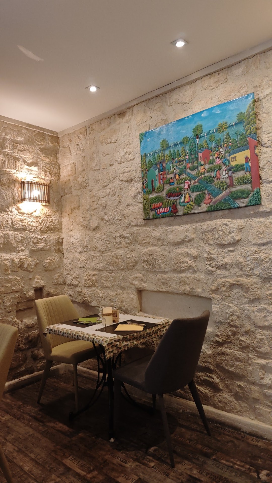 Un véritable trésor caché 🤩 Découverte d'un restaurant à l'ambiance créé pour se croire ailleurs le temps d'un repas. Ce qui est d'autant plus remarquable c'est que la décoration est en partie de la récup et importée par le chef lui même de Haïti. J'ai adoré l'ambiance atypique, de mini caze ou les familles peuvent manger en toute intimité, toutes ces couleurs qui envoient du positif. L'accueil humain de passionné de restauration comme on en voit plus beaucoup. Difficile de choisir un plat parmi la dizaine proposé tellement chacun fait saliver. Je recommande tellement la pirogue d'Accra et sa sauce épicée, un délice ! Ce resto restera dans mon top 5 ! 🙂 Merci vraiment à ces restaurateurs d'aimer leur métier et de nous le faire tant ressentir.