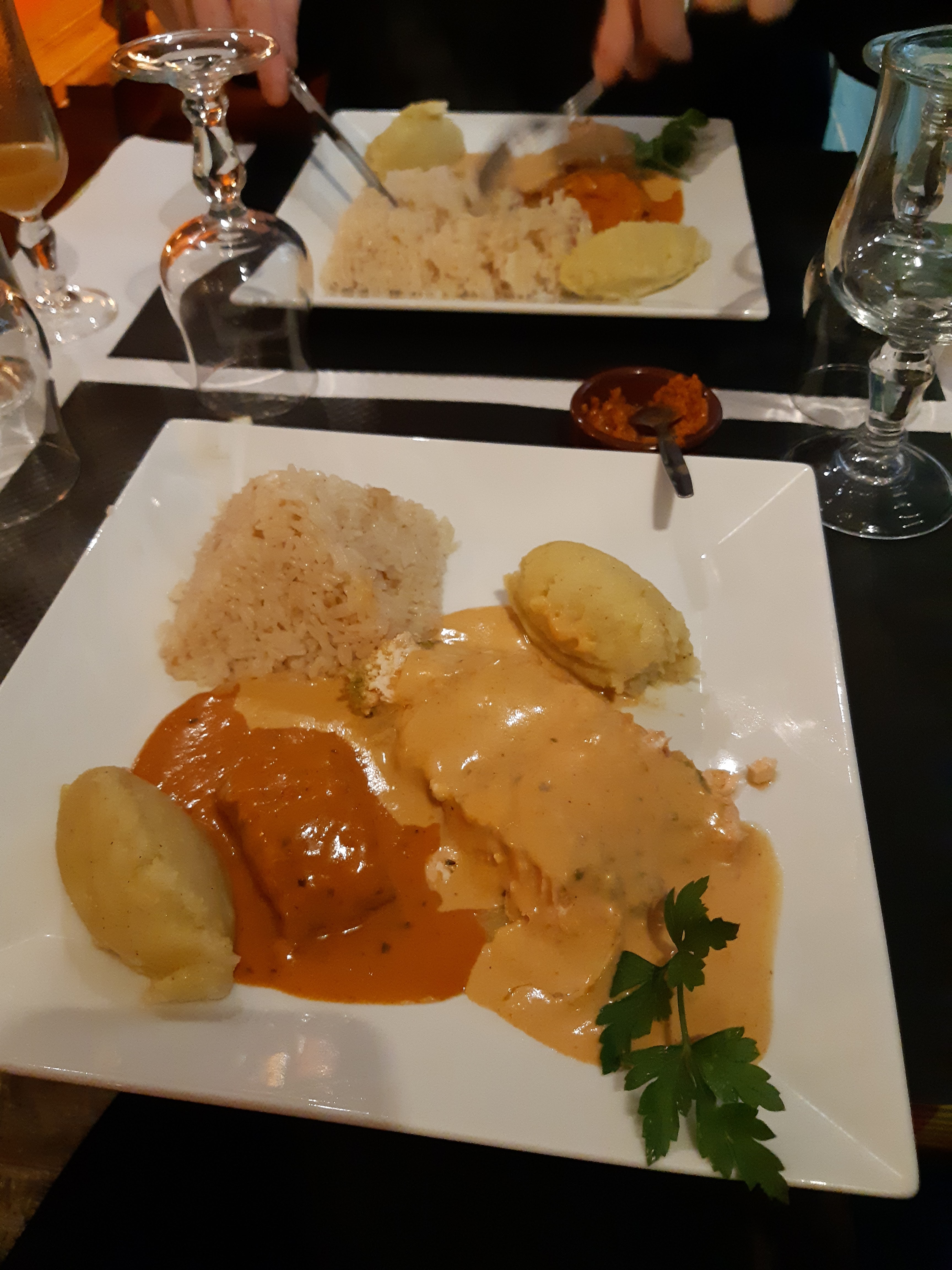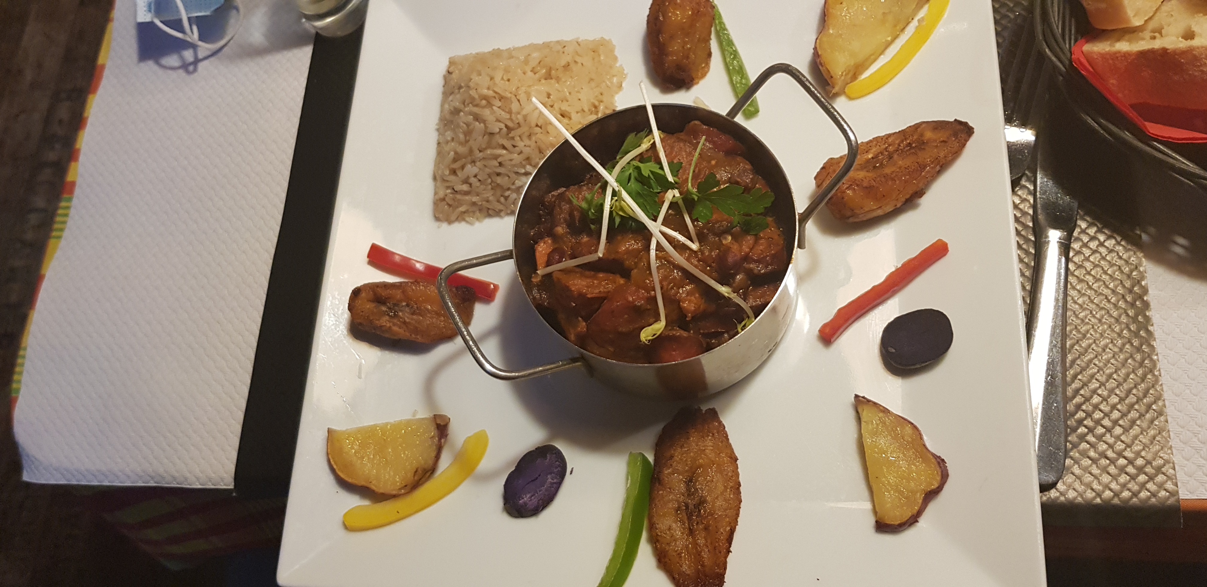 Accueil sympa. Cadre typique Nous avons très bien mangé une cuisine exotique avec beaucoup de saveur .Pas trop épices. Très bien présenté. Une très bonne table à recommander. Bravo au chef