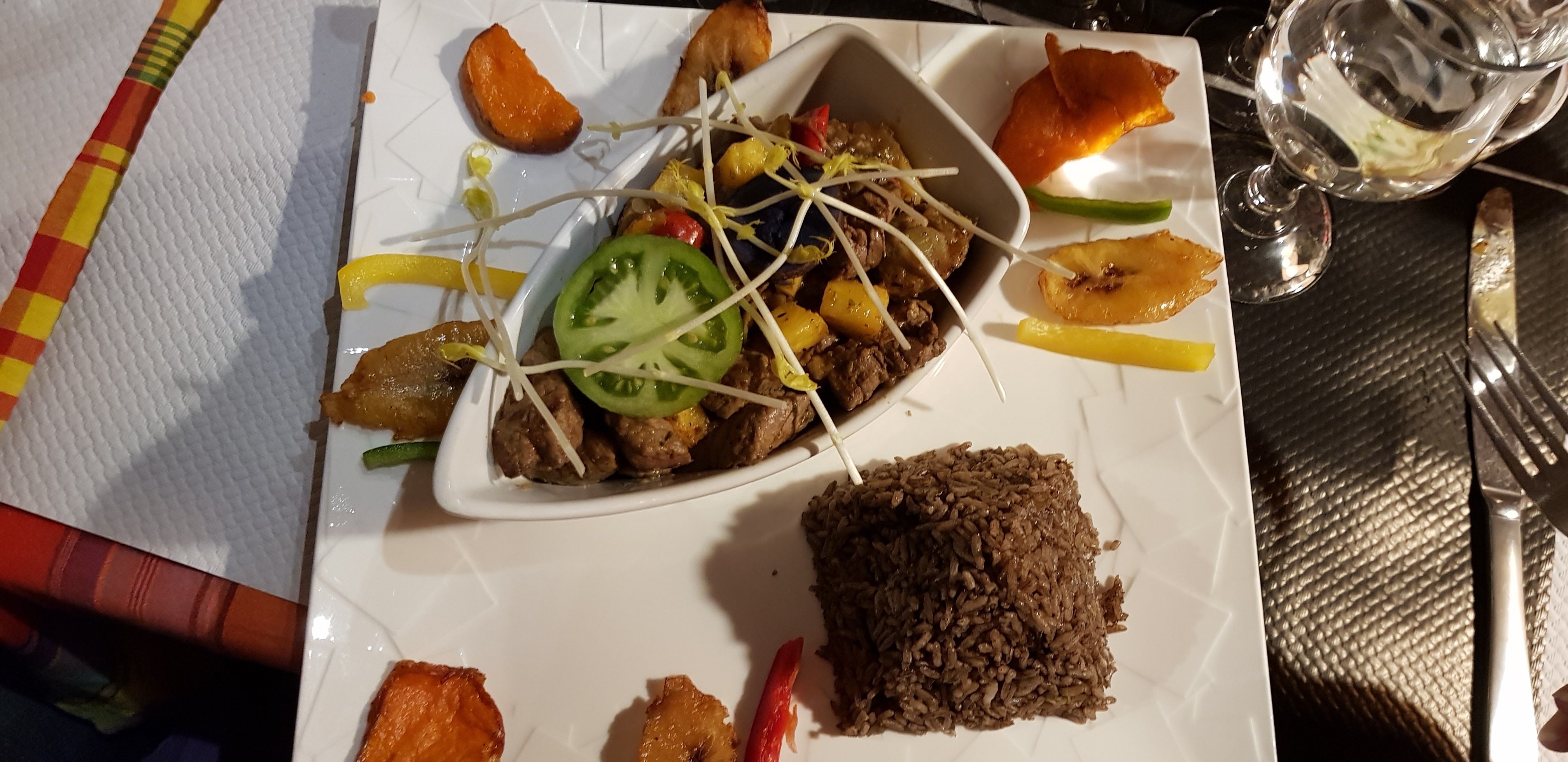Très bon repas (même si je n'ai pas mangé le riz), accras et boudins super bon, plats bien présentés et copieux, et le dessert (fruits) un délice. Après un retour de vacances, nous sommes repartis le temps d un repas !! Merci !! A bientôt