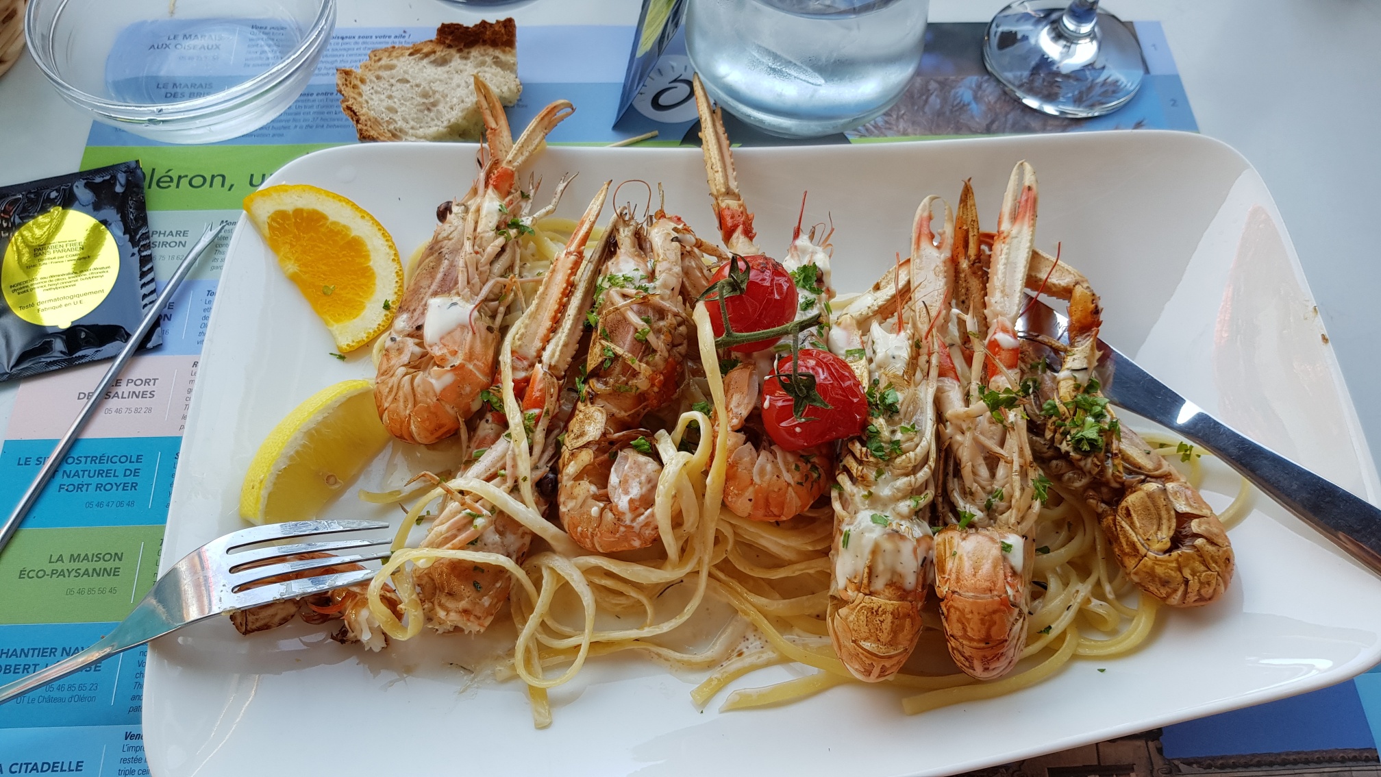 Bonjour Nous avons déjeuner le week-end dernier Pour mon épouse et les enfants rien à dire. Pour ma part c est l inverse. 5 langoustine petit calibre et deux cuillère de pattes pour 18€ c un peut trop chère. Et 8€ le café liégeois c un peut abusé Restaurant plus pour les bobos charentais et les touristes.