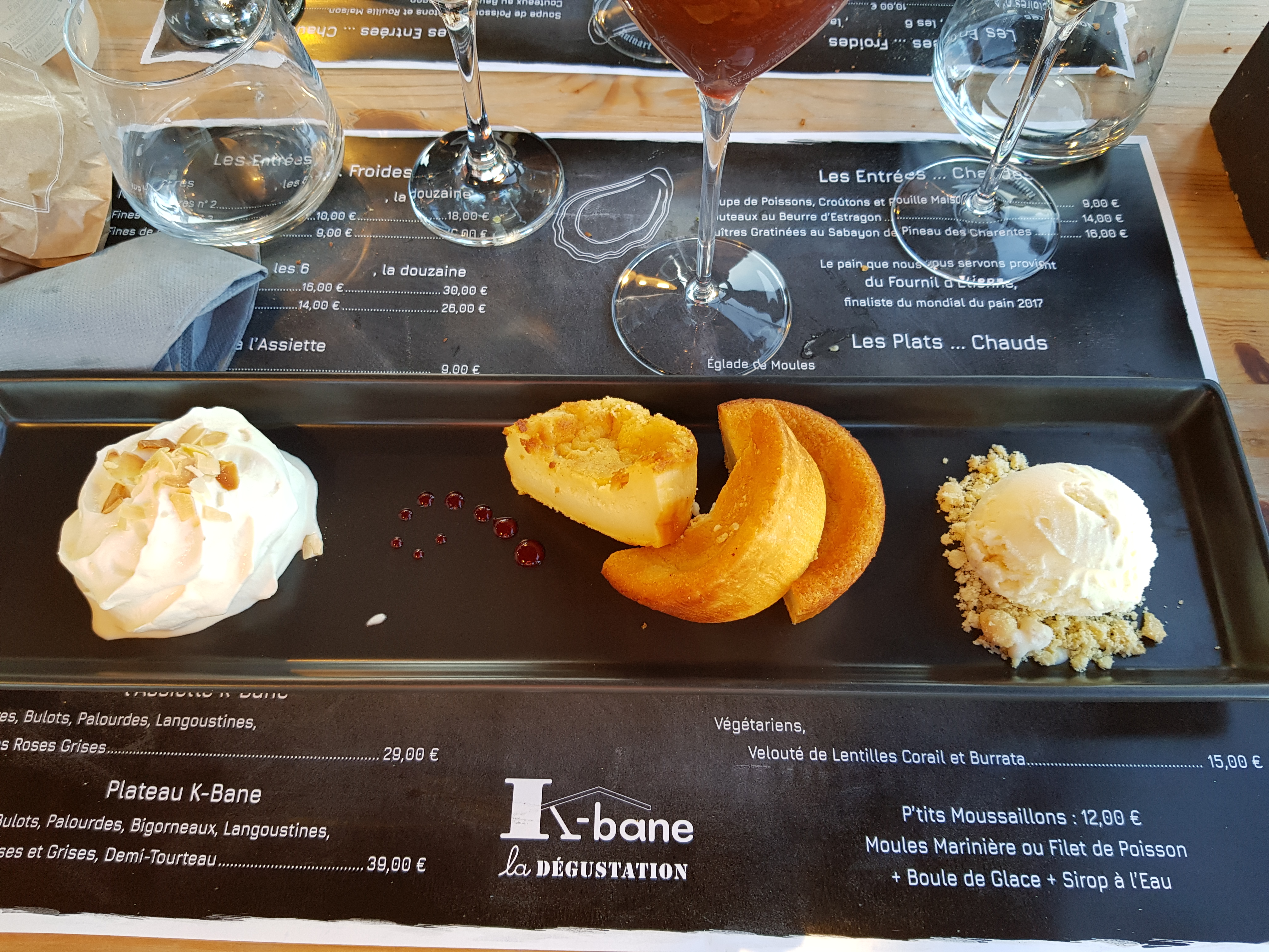 Pr une soirée en amoureux, on en espérait pas tant!! Lieu élégant sans chichis superflus, une équipe qui vous accueille avec simplicité et bonne humeur, et le plus important: les fruits de mer! D'une fraîcheur!! Et cerise, une vue apaisante et belle. La K-bane, notre plus chouette découverte gustative jusqu'à présent sur Oleron :)