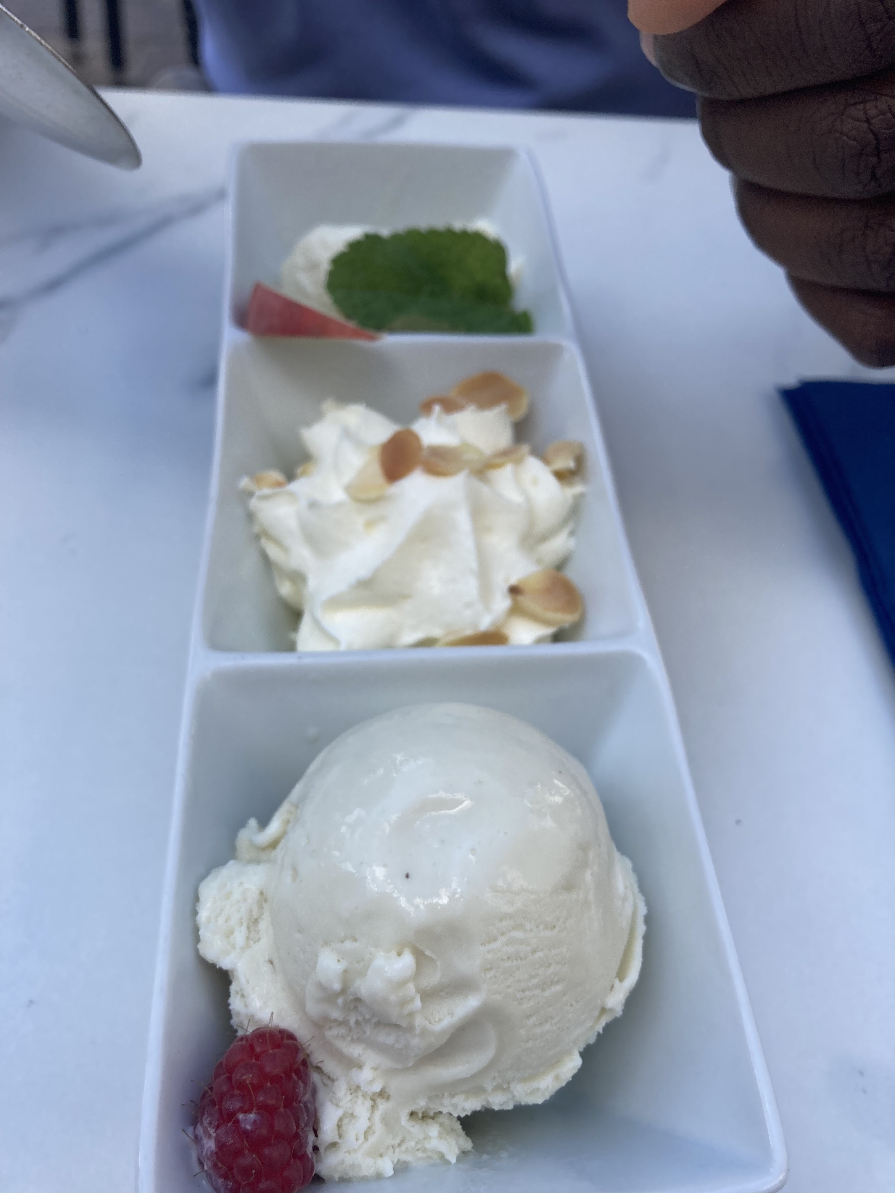Nous avons choisi la carte et menu ....le rolls de concombre est extra 👍les salades copieuses, la glace cerises une tuerie 🤪 le personnel est hyper sympa c était un super moment. Merci à toute l'équipe.