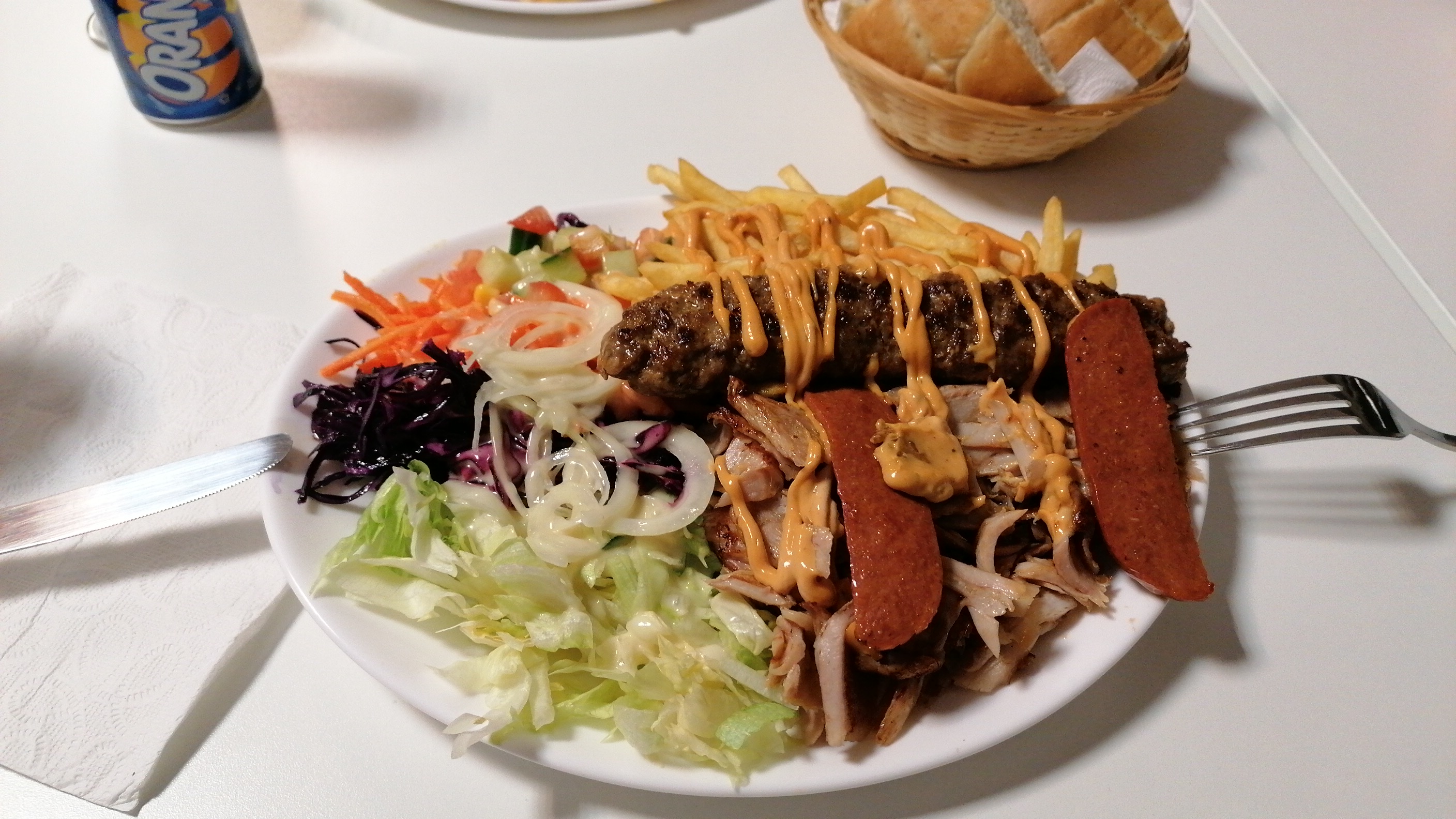 Étant un écumeur de kebab (et exigeant sur la qualité avec le temps j’avoue), je dois avouer que j’ai été particulièrement surpris par ce kebab de village. La viande ne se gorge pas de sauce, la cuisson de la viande est maîtrisée, les sauces sont vraiment agréables. J’y reviendrais.