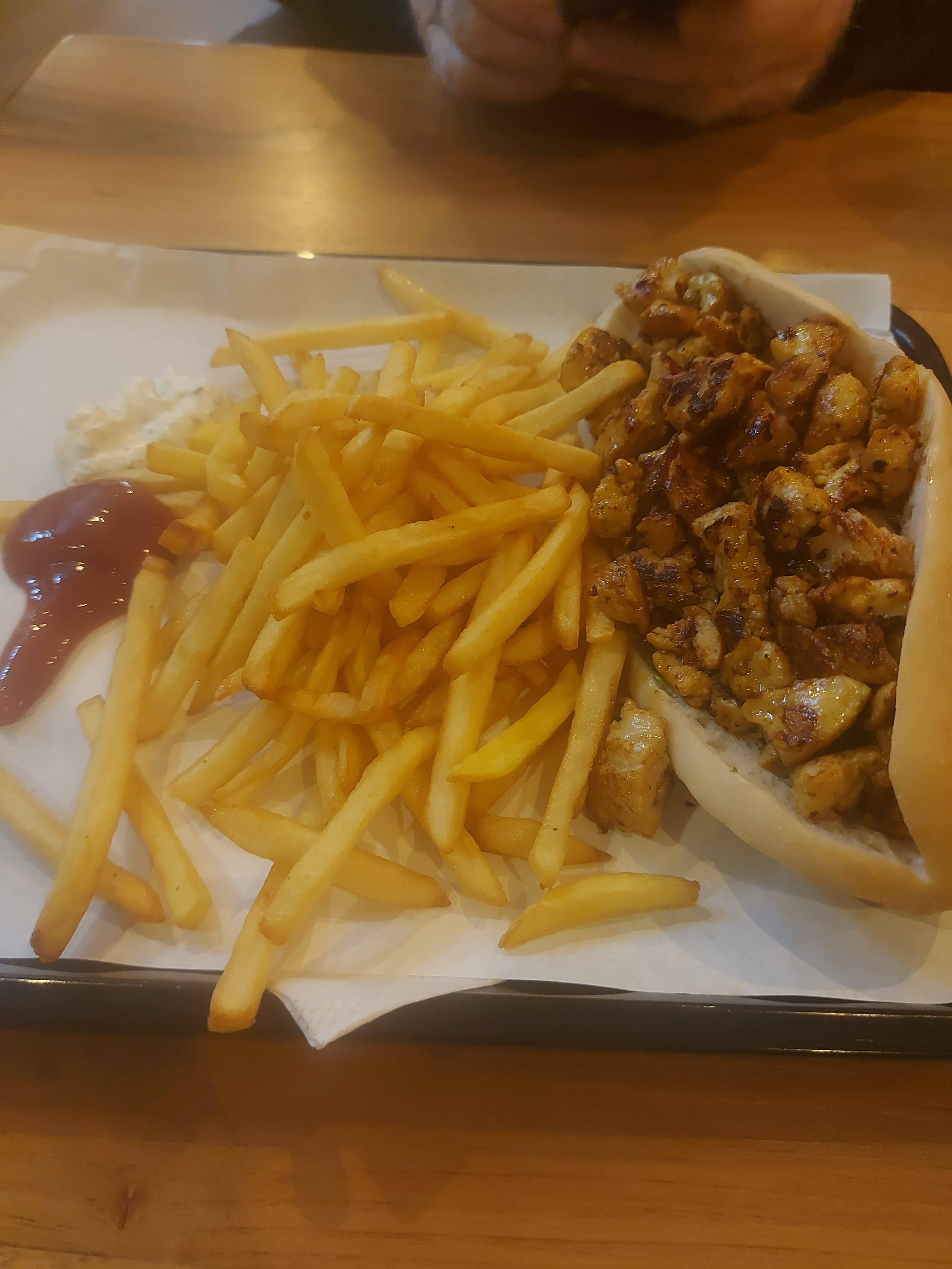Nous sommes arrivés par hasard un samedi pour manger, le seul choix restant « Viande de kebab » payer 9,50€ en menu avec boisson. C’est dommage ! les tenders à revoir la cuisson