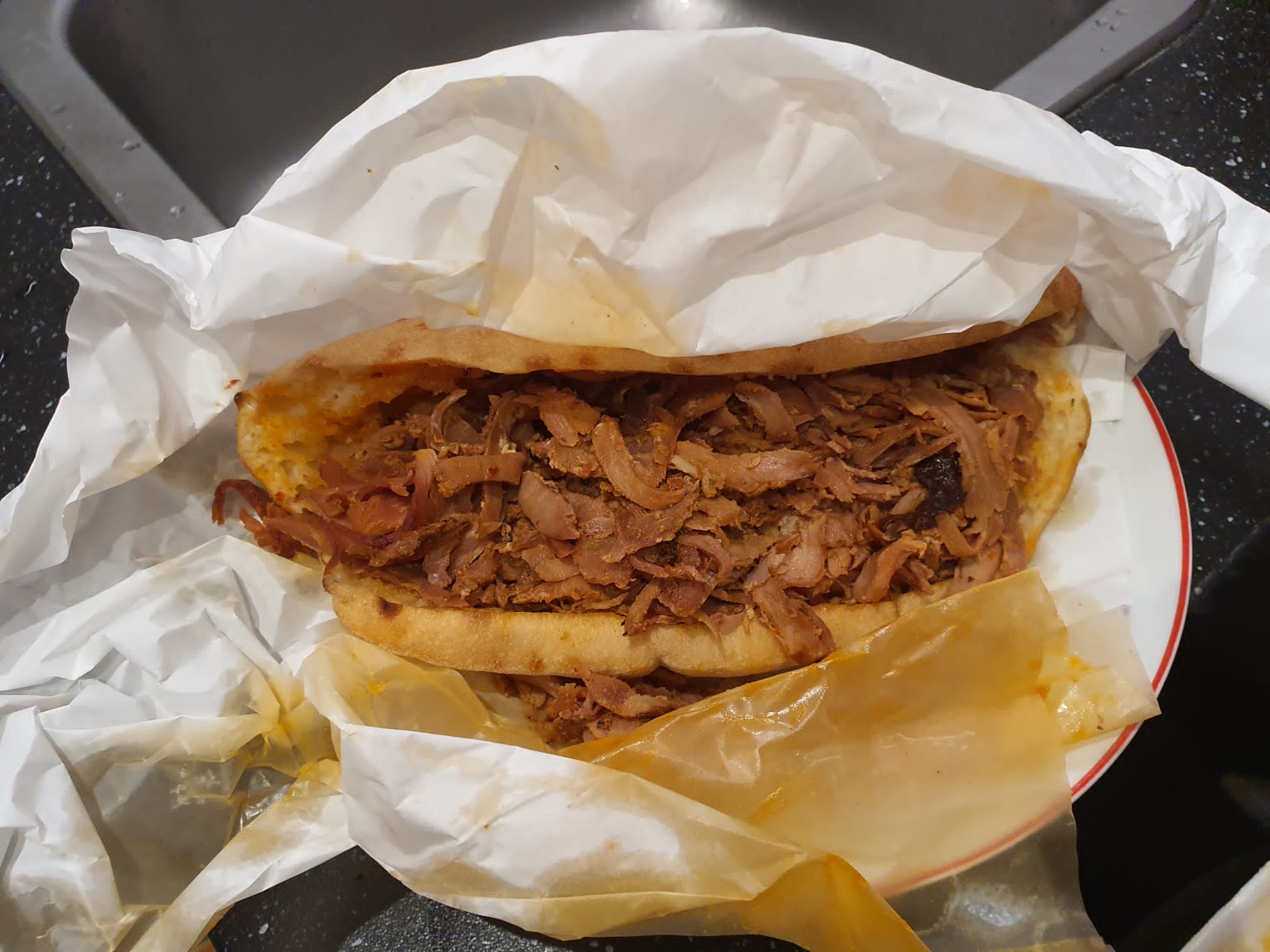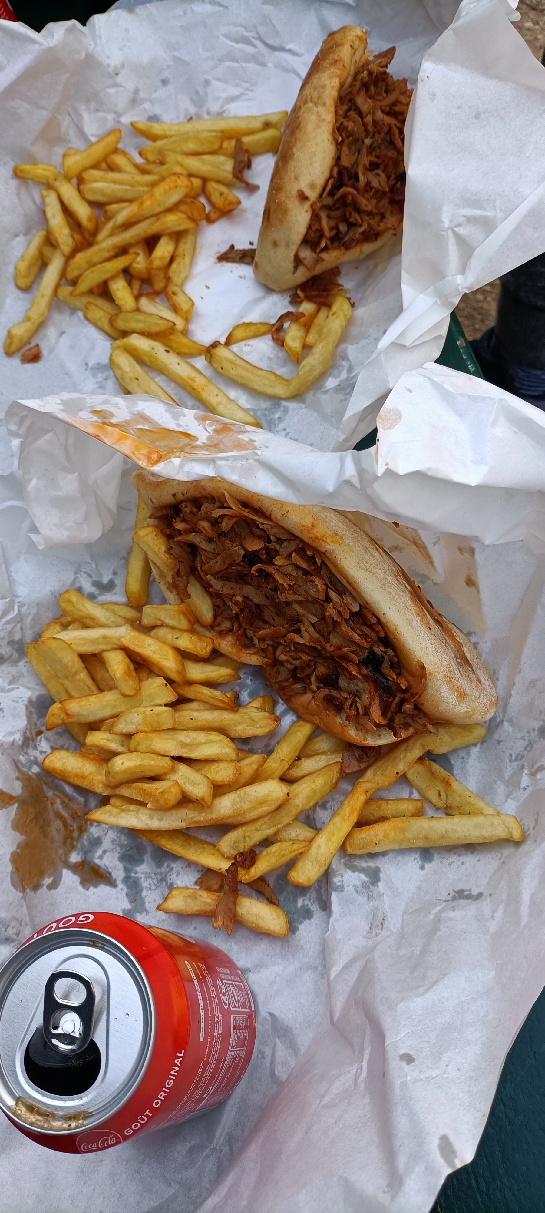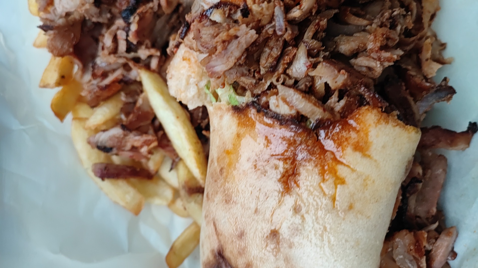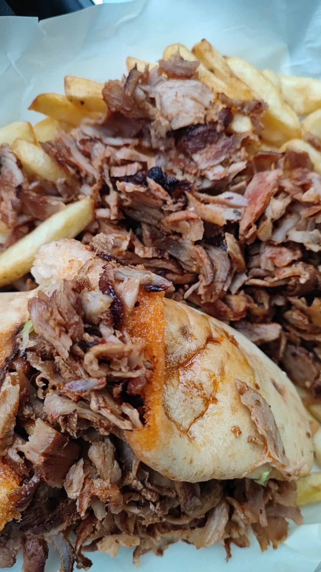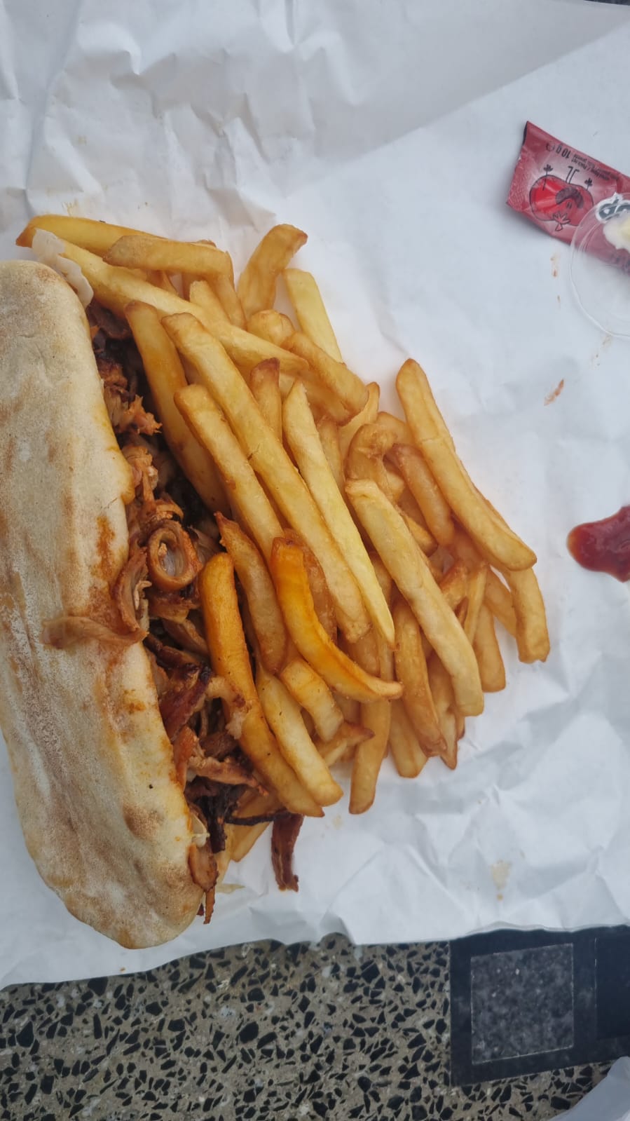 Recommandé par un ami habitant dans le quartier. Je m'y aventure un lundi soir, pas trop d'attente, préparation rapide. Sandwich avec un pain classique 🥙. La broche ÉNORME, viande bien cuite et assaisonnée, très très bonne et pas trop grasse. Frites 🍟 trop classiques, heureusement un peu d'épices et du sel pour pimper ça. 🍴 pas de salle pour s'asseoir donc j'ai dégusté ça de retour à la maison 🚗.