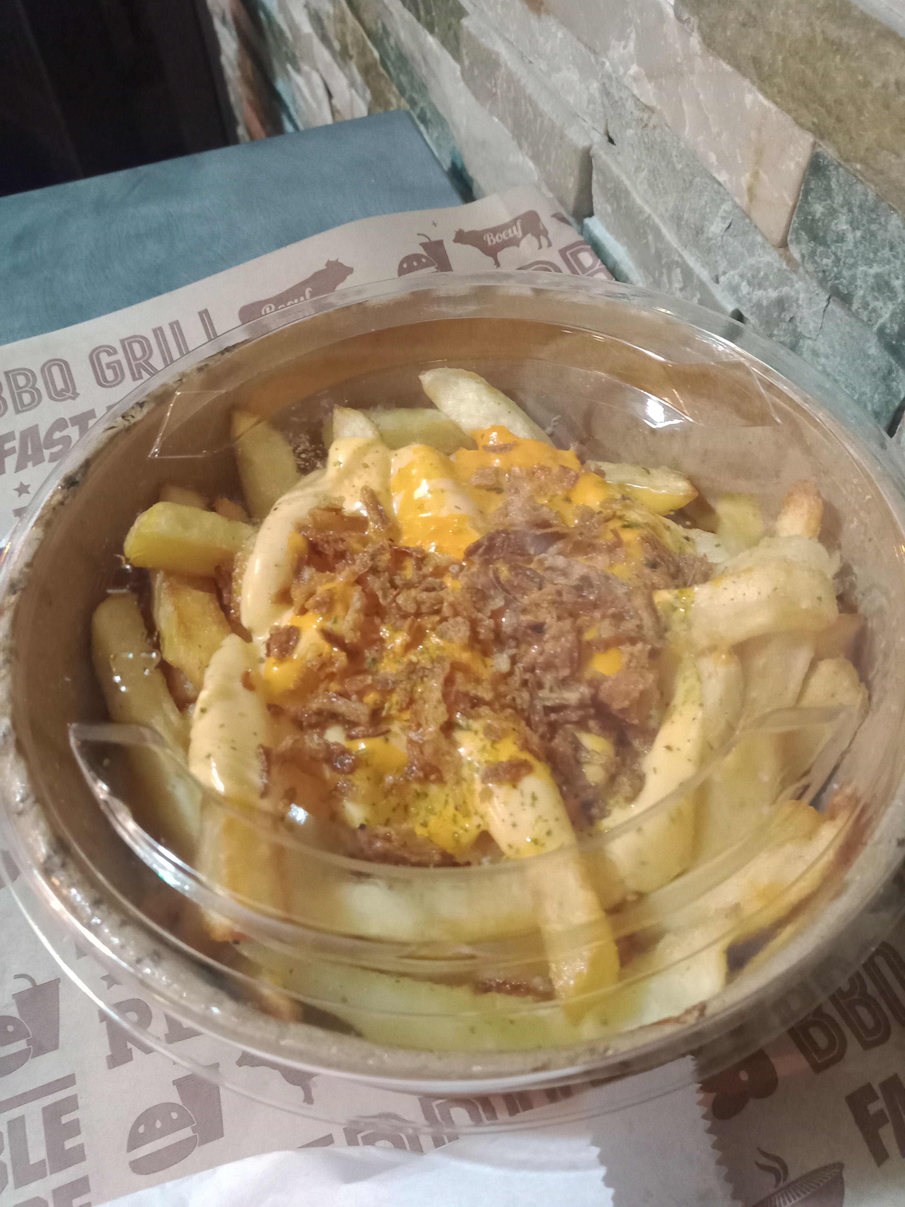 Peu de frites. Sauce blanche sans goût je pense coupé avec un peu trop d'eau ce qui fait que l'on sens beaucoup moins le gout de la sauce. KEBAB en lui même tres bien. Personne sympatique.