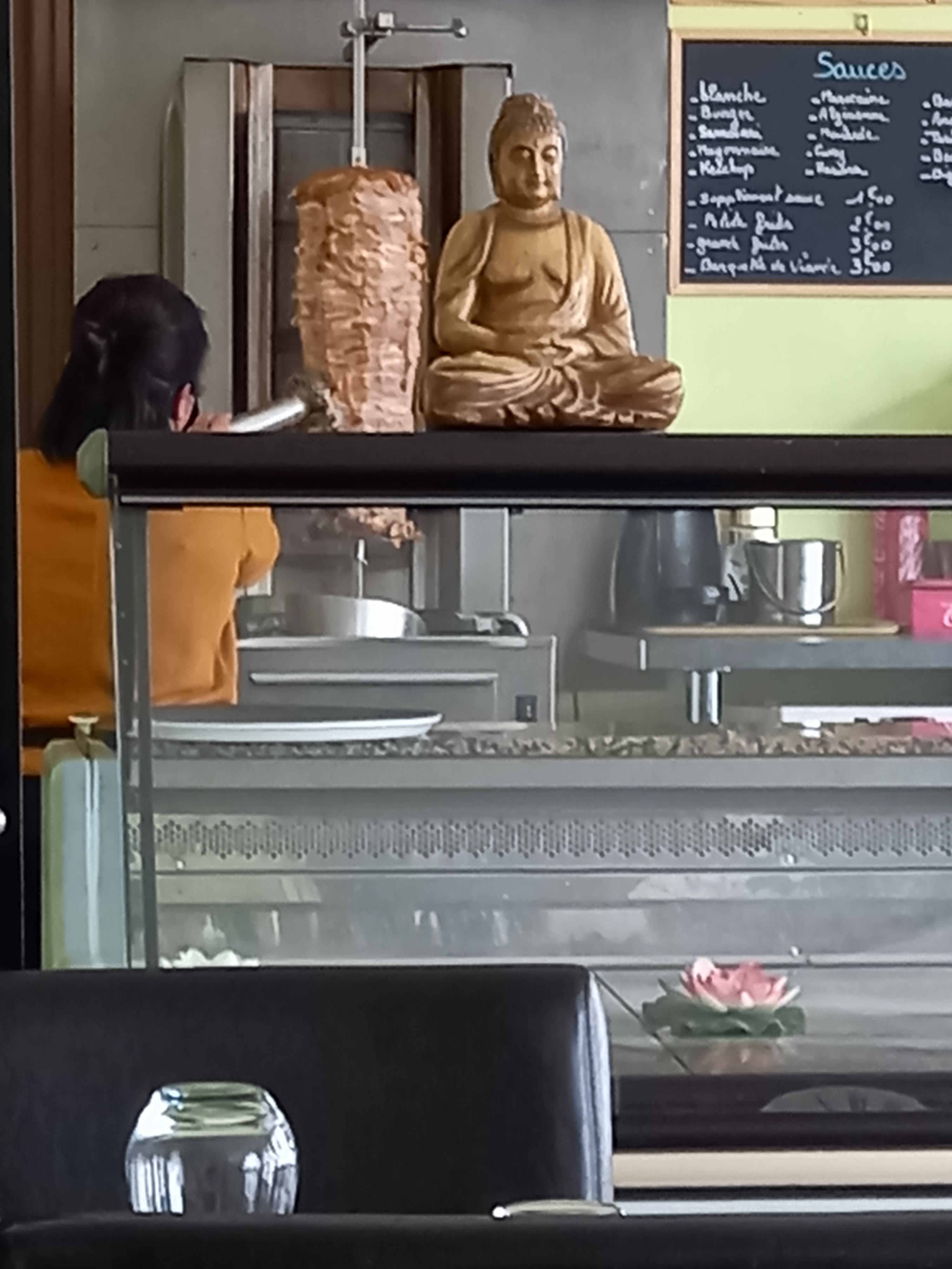 La serveuse... Non souriante visiblement le sans envie ni rien... Des mouches dans les repas du petit buffet. la cuisine pas trop mal pour le kebab mais tacos a faire goûter au cuisto... En gros déçu de voir tant de bons commentaires en vue de la prestations reçu !