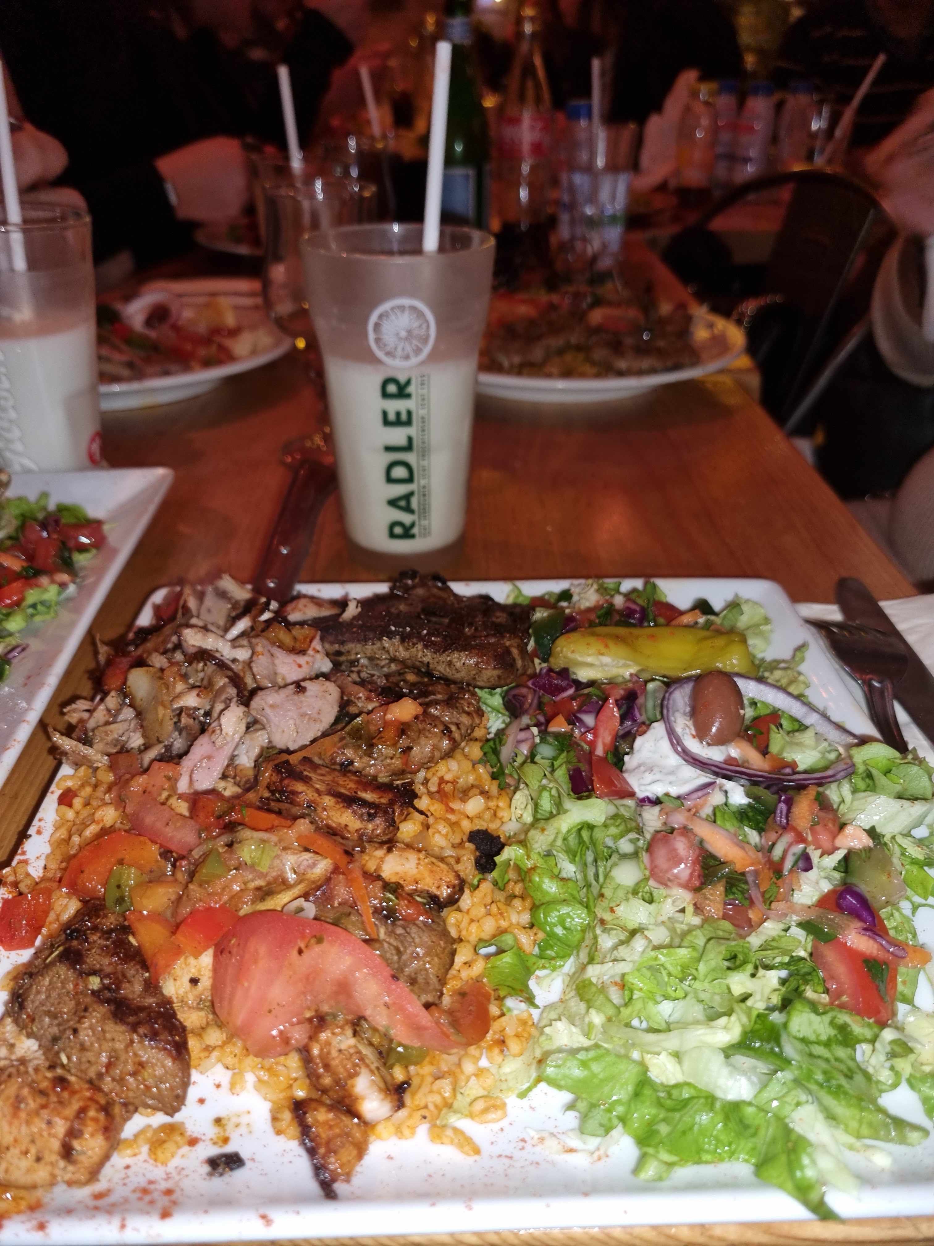 Un très bon dîner dans une superbe salle. Nous avons commandé une assiette Istanbul et un Grand Mezze (servi avec une barquette de pain). Des portions généreuses pour un prix abordable, je recommande fortement!