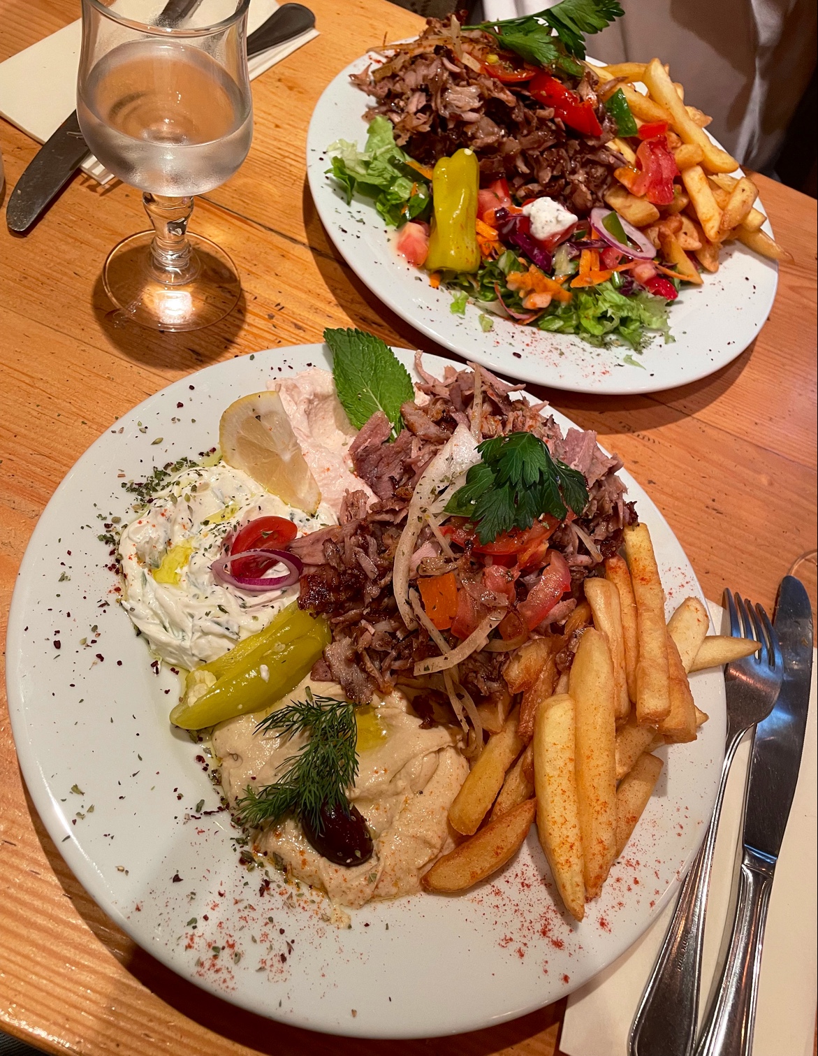 Délicieux ! Le kebab est sûrement un des meilleurs de Paris et les assiettes de viandes sont aussi bonnes que belles. (Sur la photo : l'assiette méditerranéenne en premier plan, et l'assiette doner kebab). Je vous recommande fortement d'y faire un tour !