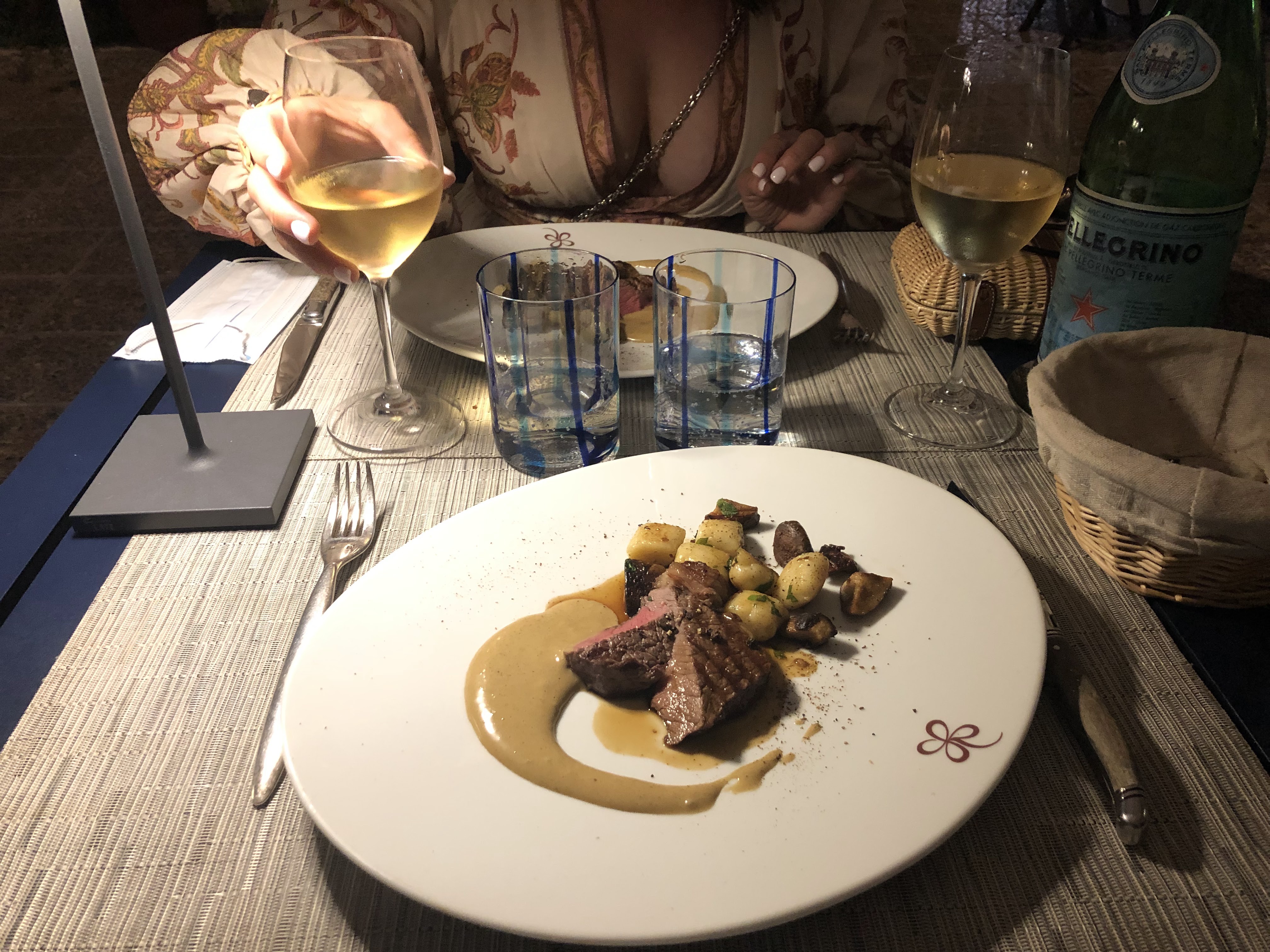 Nous sommes venus pour la première fois nous avons pris a la carte sont assiette de mille feuilles de boeuf et nous avons été très déçu a 40 euros le plat et nous servir des baigner en accompagnement du jamais vu c est vraiment trop cher pour ce que sait et nous avons manger dans des gastro dans d autre regions pour moins cher qui étaient bien meilleure