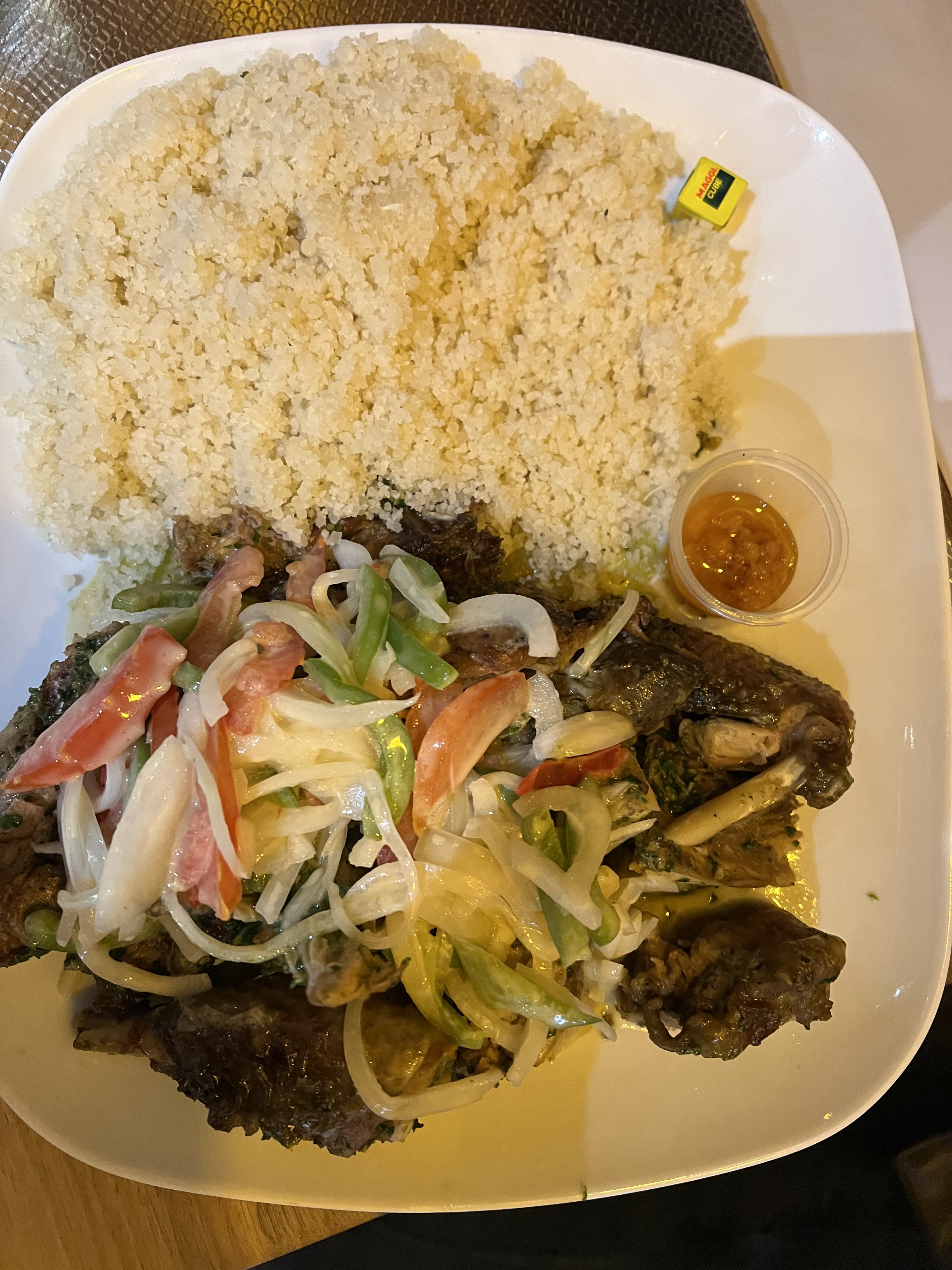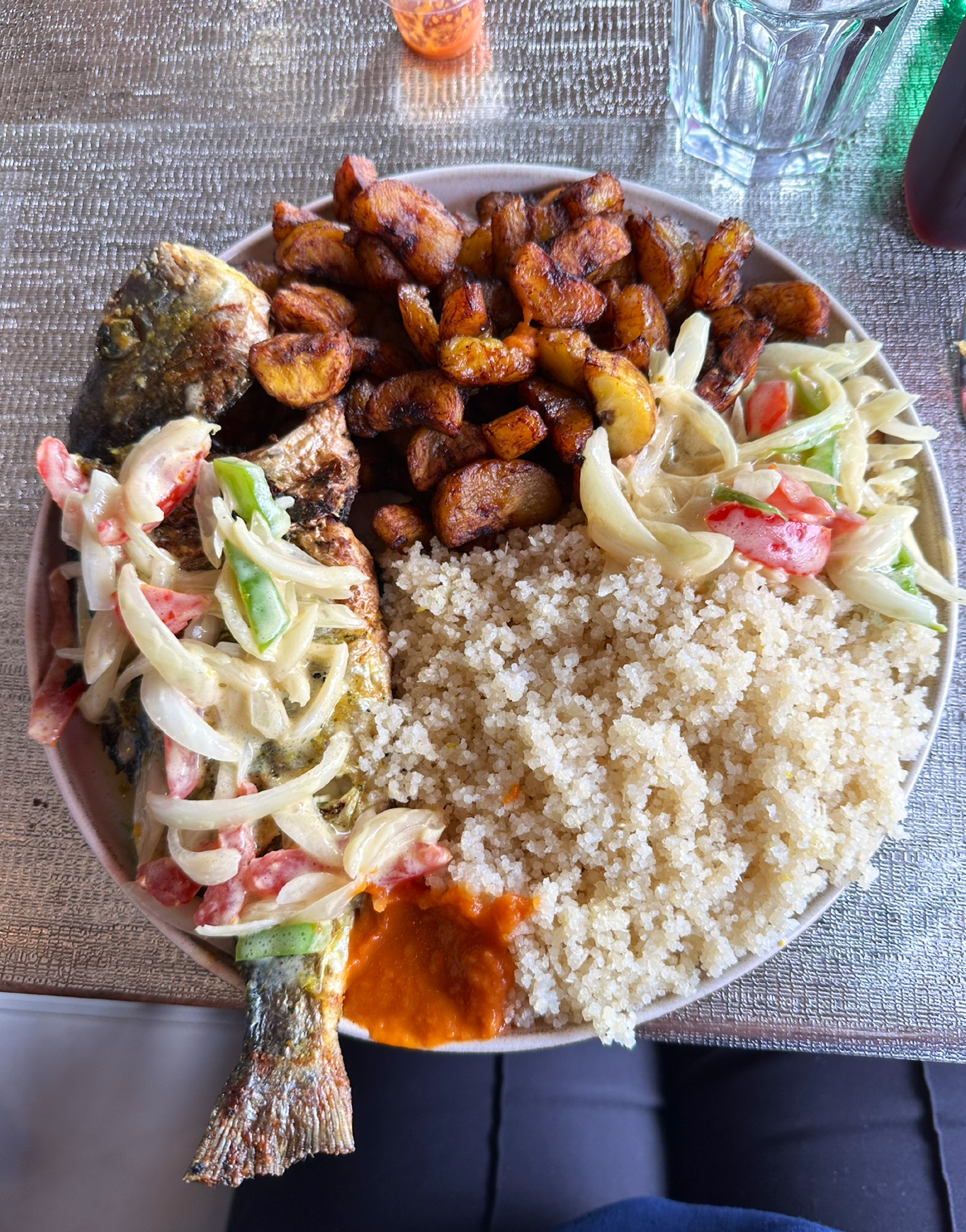C'était correct, c'est dommage qu'il n'y a pas de menu enfant dans les restaurants africains, juste réduire la quantité et mettre un jeu🤫😁 Sur le snap on voit des mélanges, exemple attieke alloco et au restau on nous dit que c'est pas possible 🤔 c'est dommage