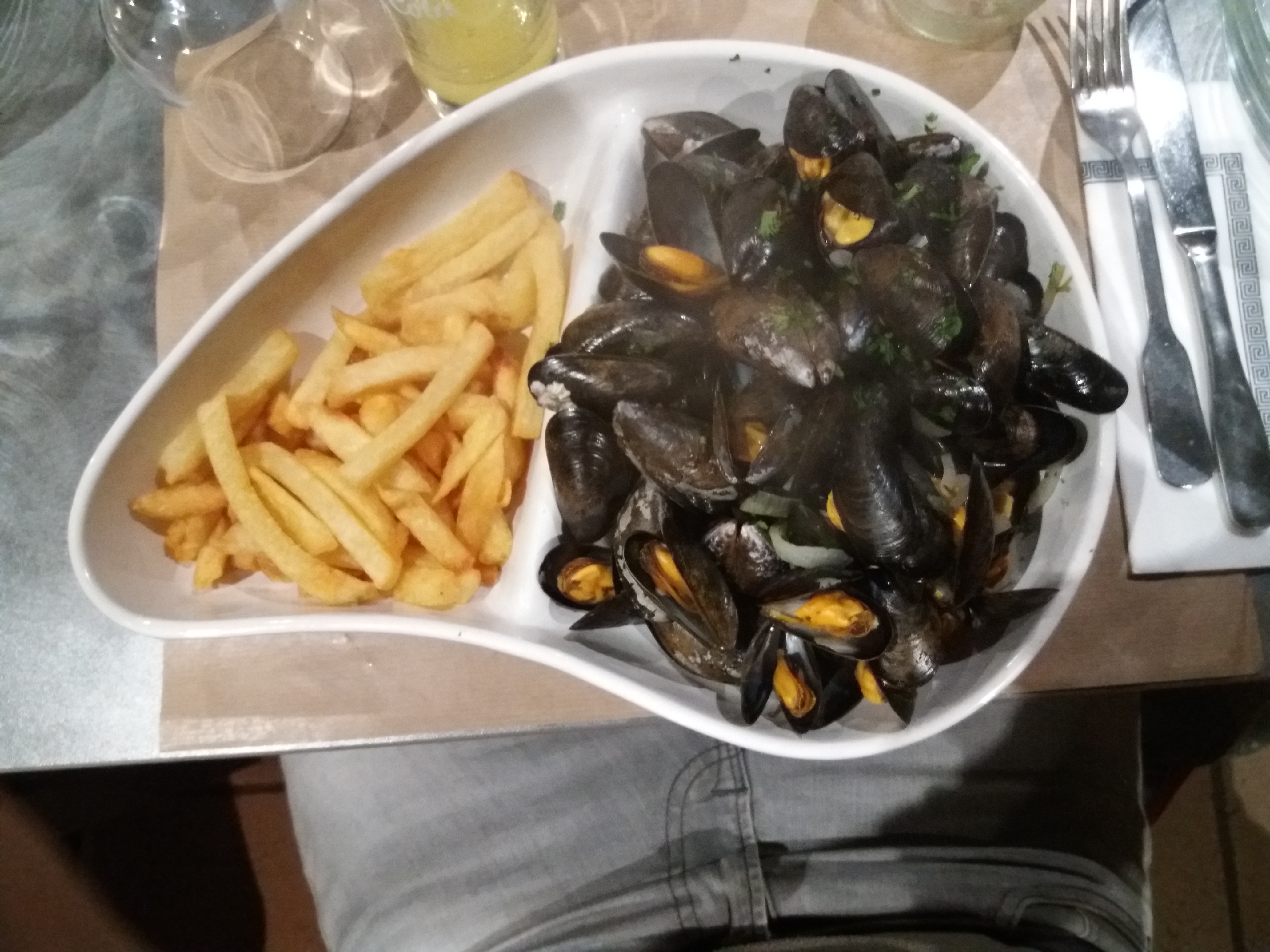 Très bon restaurant, nous avons pris des moules curry et marinière avec des frites maison. Puis en dessert crêpes chocolat pour l'une et au caramel pour l'autre, tout était très bon.