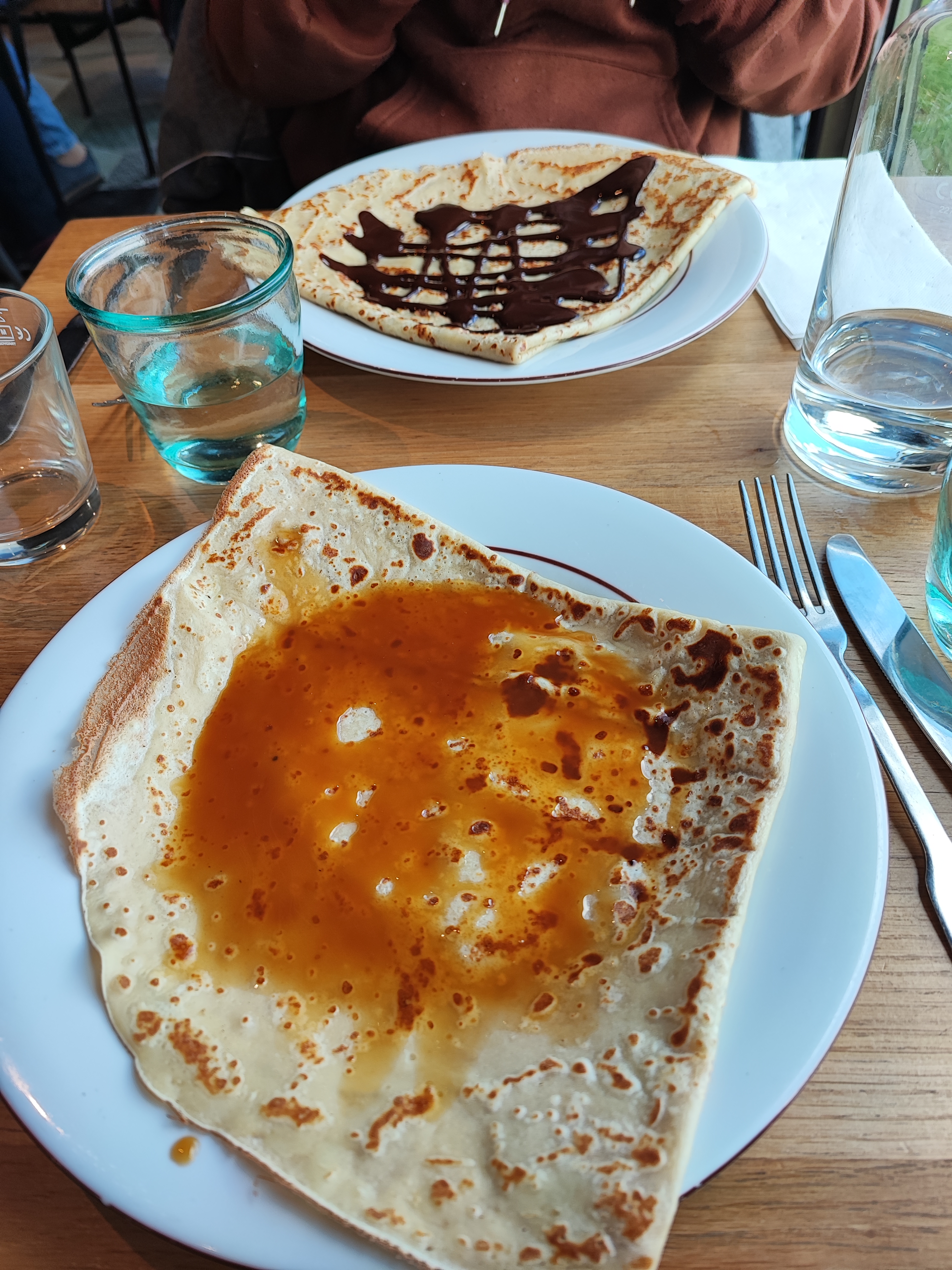 Très bonne adresse, visitée en famille. Service excellent pour les adultes comme pour les enfants. Le détail qui fait la différence : une carafe est mise à table dès notre arrivée, ça change des restaurants où il faut pleurer pour en avoir une... Un personnel si sympathique qu'on les sent sourire derrière le masque. Les galettes sont bonnes comme en Bretagne et le cidre bon comme en Normandie.