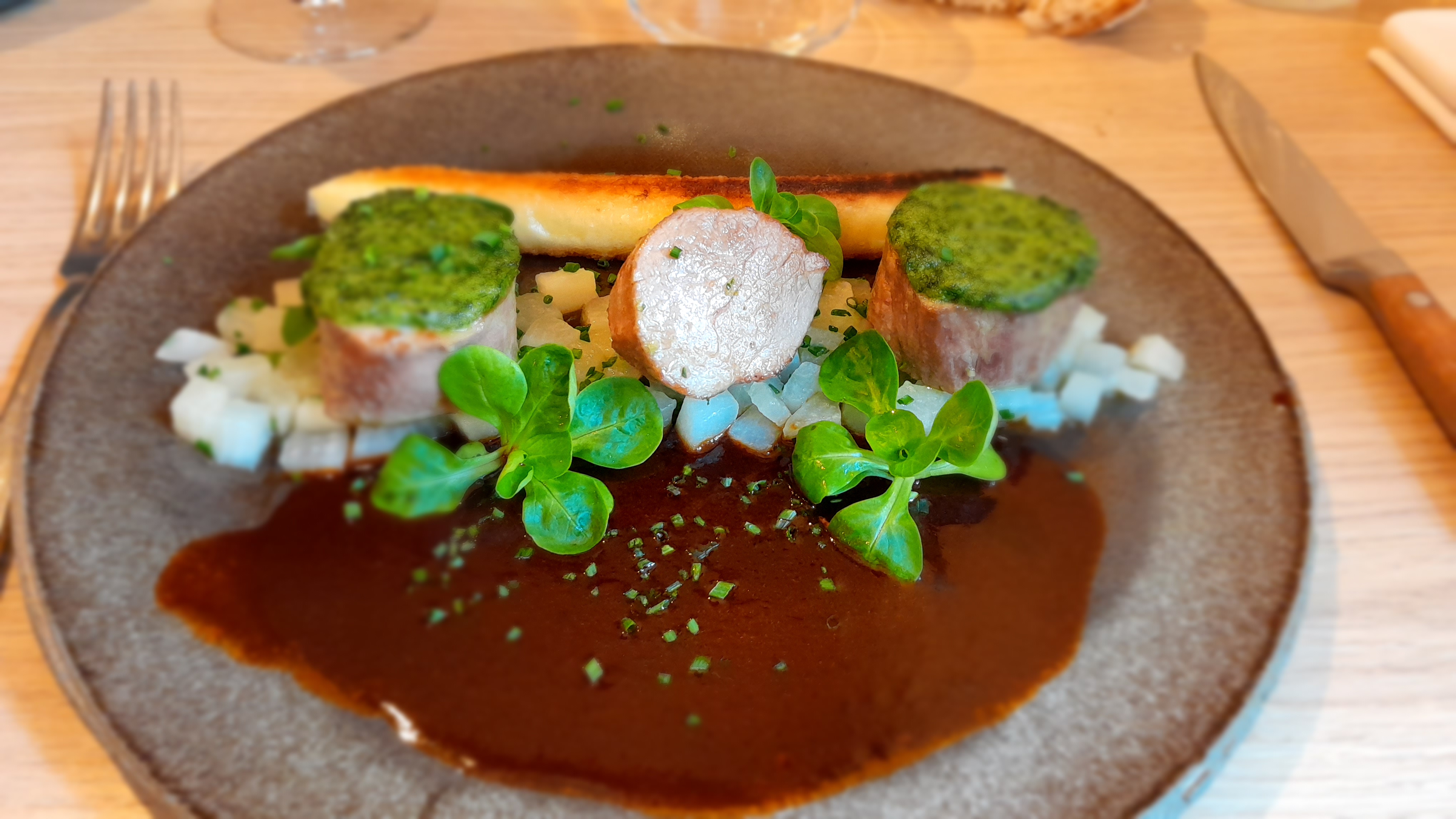Super restaurant à la cuisine raffinée. Filet de maquereaux en tempura en entrée, suprême de volaille farcit aux écrevisses et son bouillon. Un régal ! La terrasse extérieure est agréable où on profite des derniers rayons de soleil