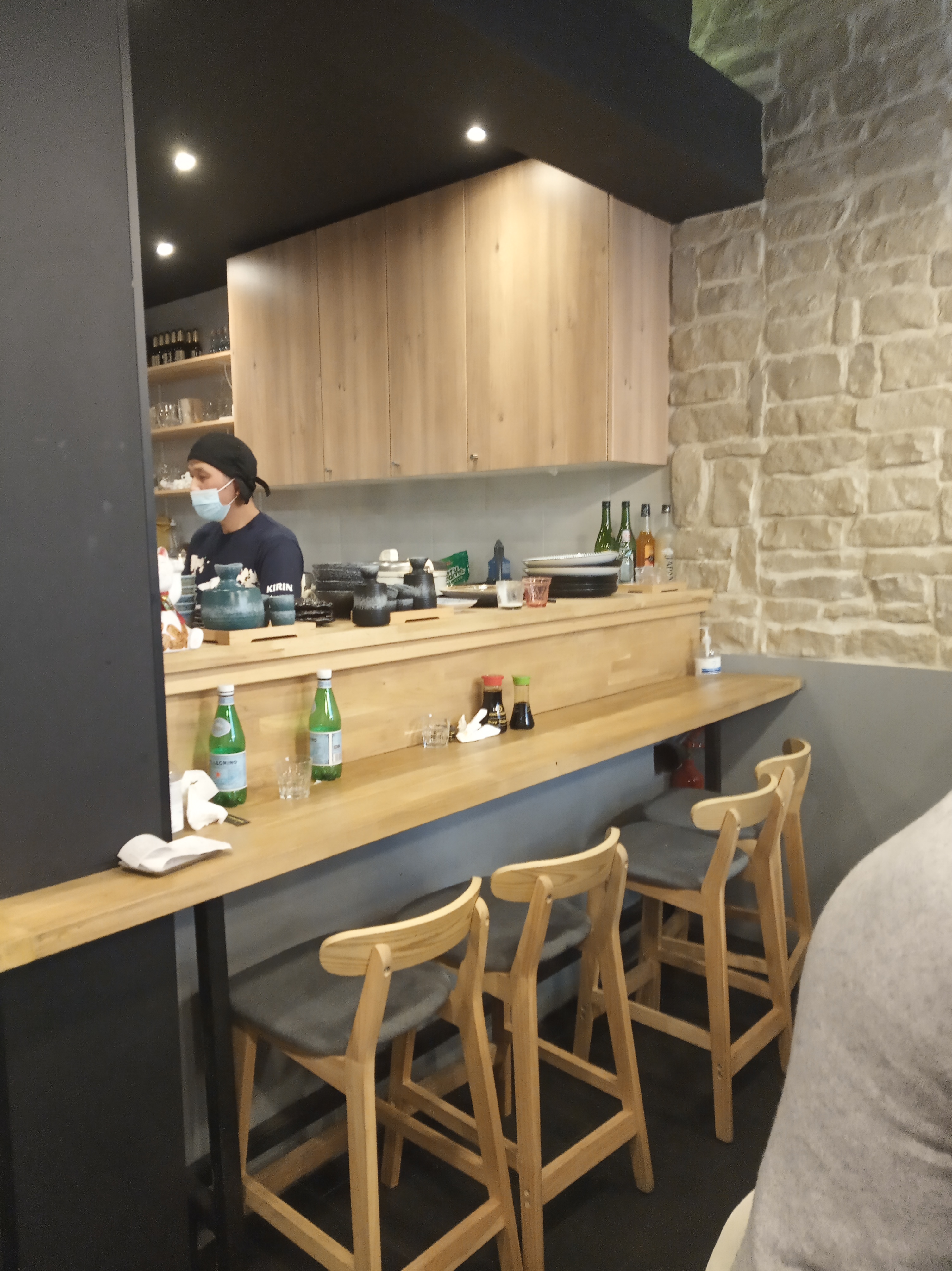 Bon restaurant, le service est assez rapide et discret. La nourriture est plus orientée sur les soushis mais on peut également avoir d'autres plats, entre autres les gyozas qui sont excellents. L'ambiance est bonne et l'on arrive quand même à discuter sans avoir a forcer le ton, n'hésitez pas à y aller , a mon passage le restaurant n'était pas avec une file d'attente trop longue