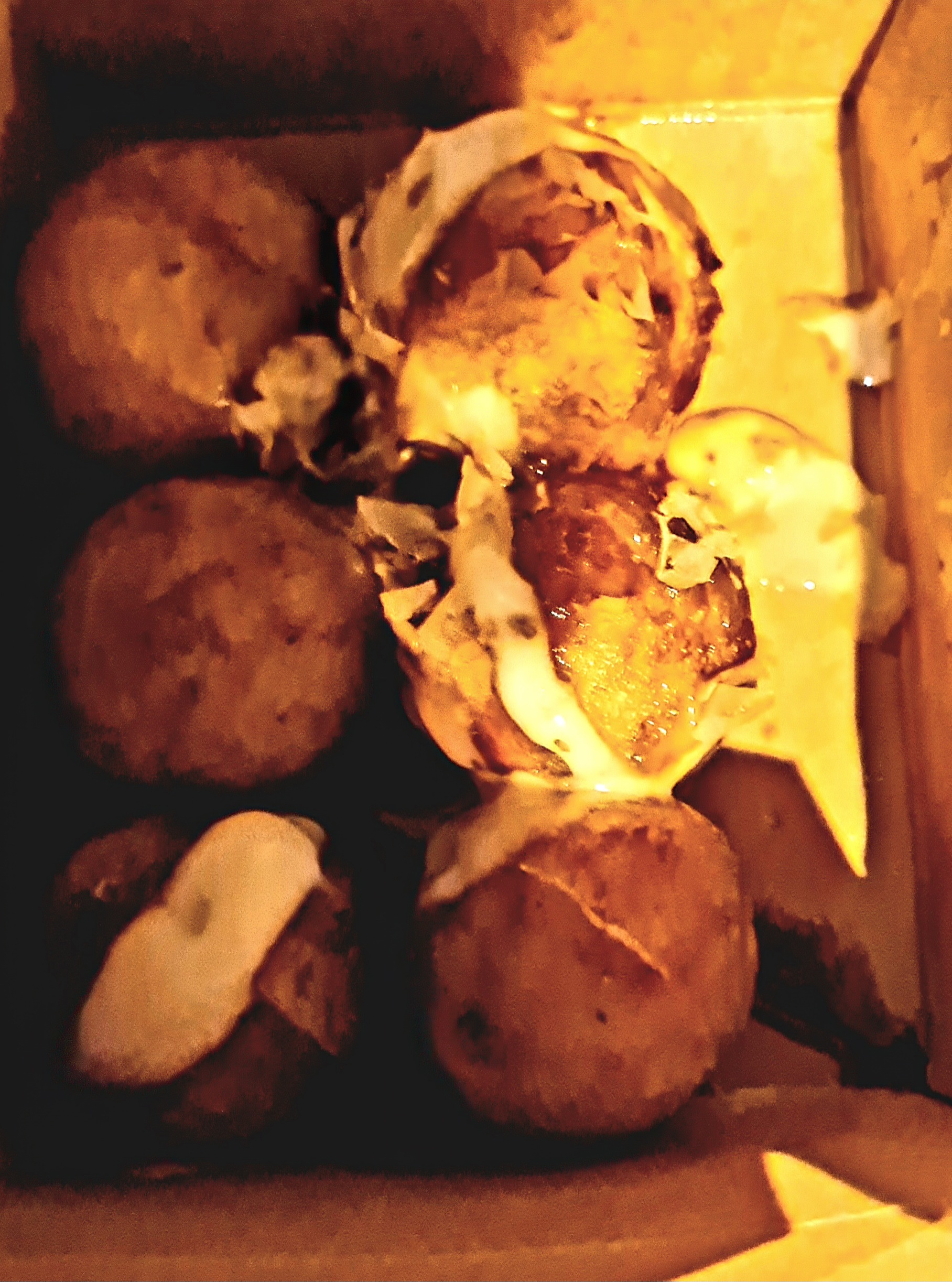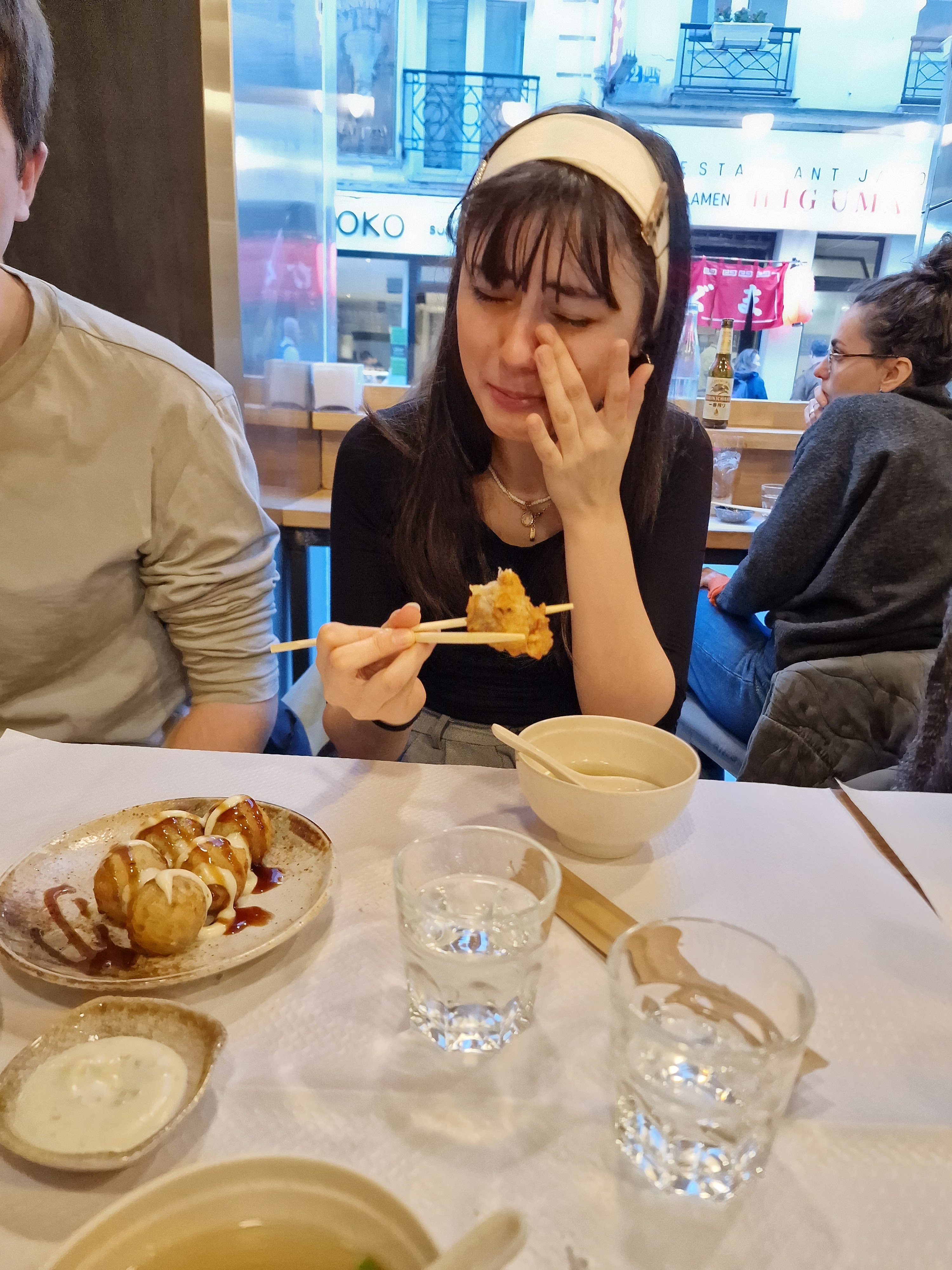 Mes takoyaki étaient gelé à l’intérieur Mon curry, j’ai eu un morceau de patate et 3 morceaux de carottes (c’est absolument tout) le poulet a un goût de cordon bleu ALDI sans fromage, il y avait si peu de sauce, qui d’ailleurs avait presque aucun goût ?? Bref vraiment pas bon, cependant mon ami a pris des sushis et il a adoré