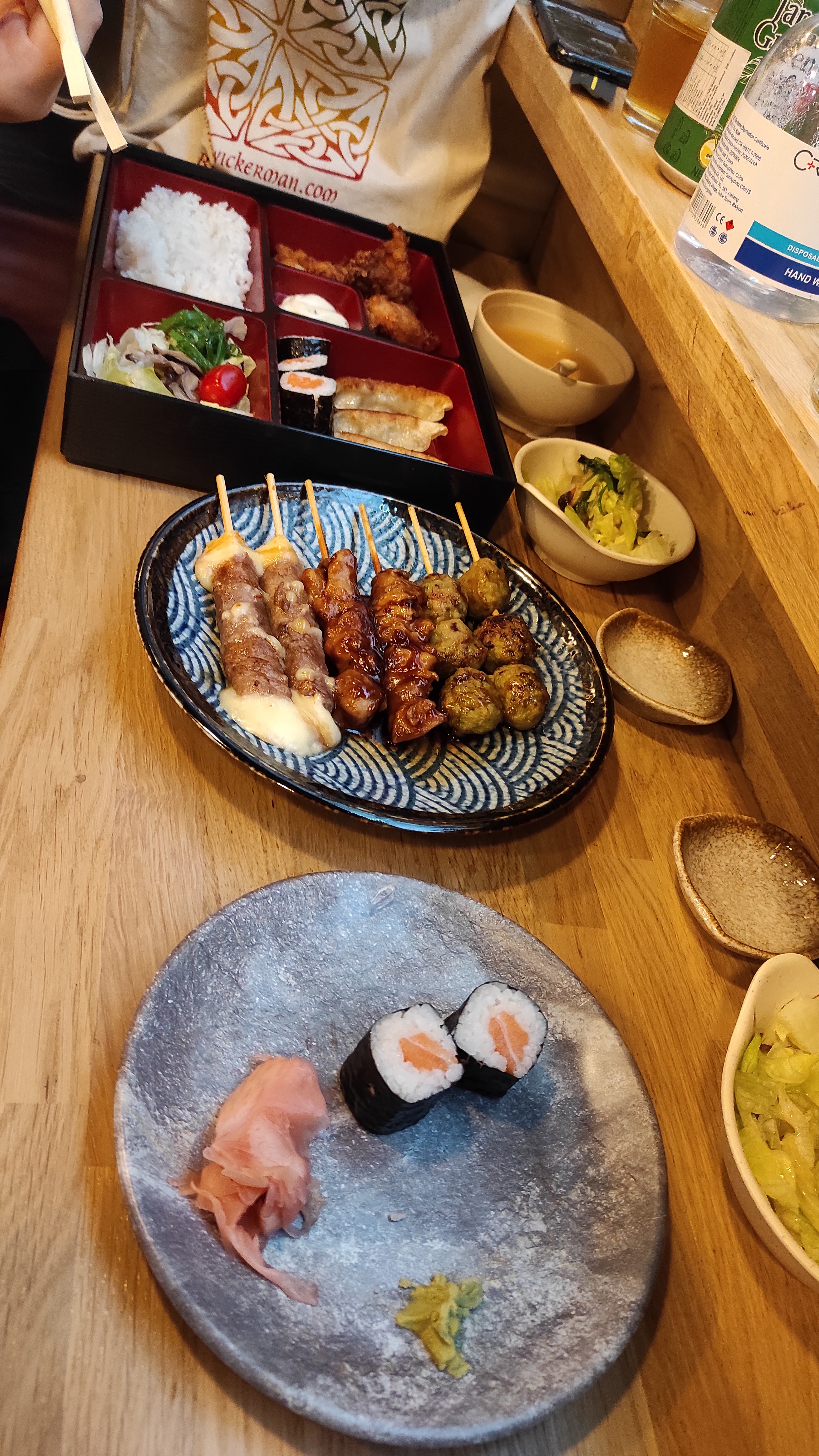 Bon clairement c’est le seul restau de la rue à ne pas avoir de file d’attente donc c’est pour une raison. Ce n’est pas vraiment japonais, mais on fait avec. Le riz des sushis et makis n’est pas du tout collant et tombe en miettes lorsqu’on le prend dans les baguettes. Mais malgré tout, le service est efficace et la nourriture mangeable même si pas très fine.
