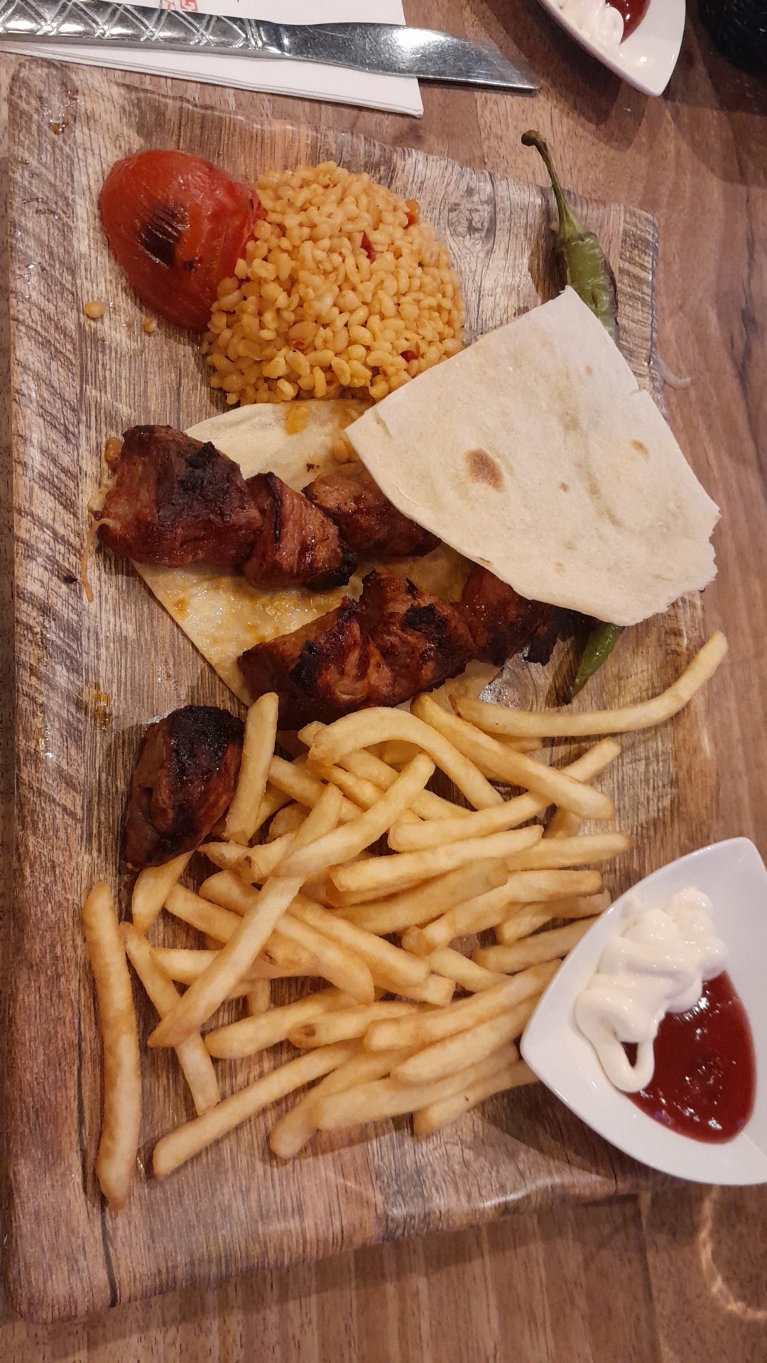 Restaurant non prévu mais en découvrant les lieux, nous avons décidé de goûter les spécialités, comme d’habitude la cuisine turc nous va à merveille, c’est super bon, franchement respect en plus nous avons pu faire nos courses dans le supermarché mitoyen. Merci encore de nous faire découvrir cette culture culinaire turc qui nous fait tant voyager.