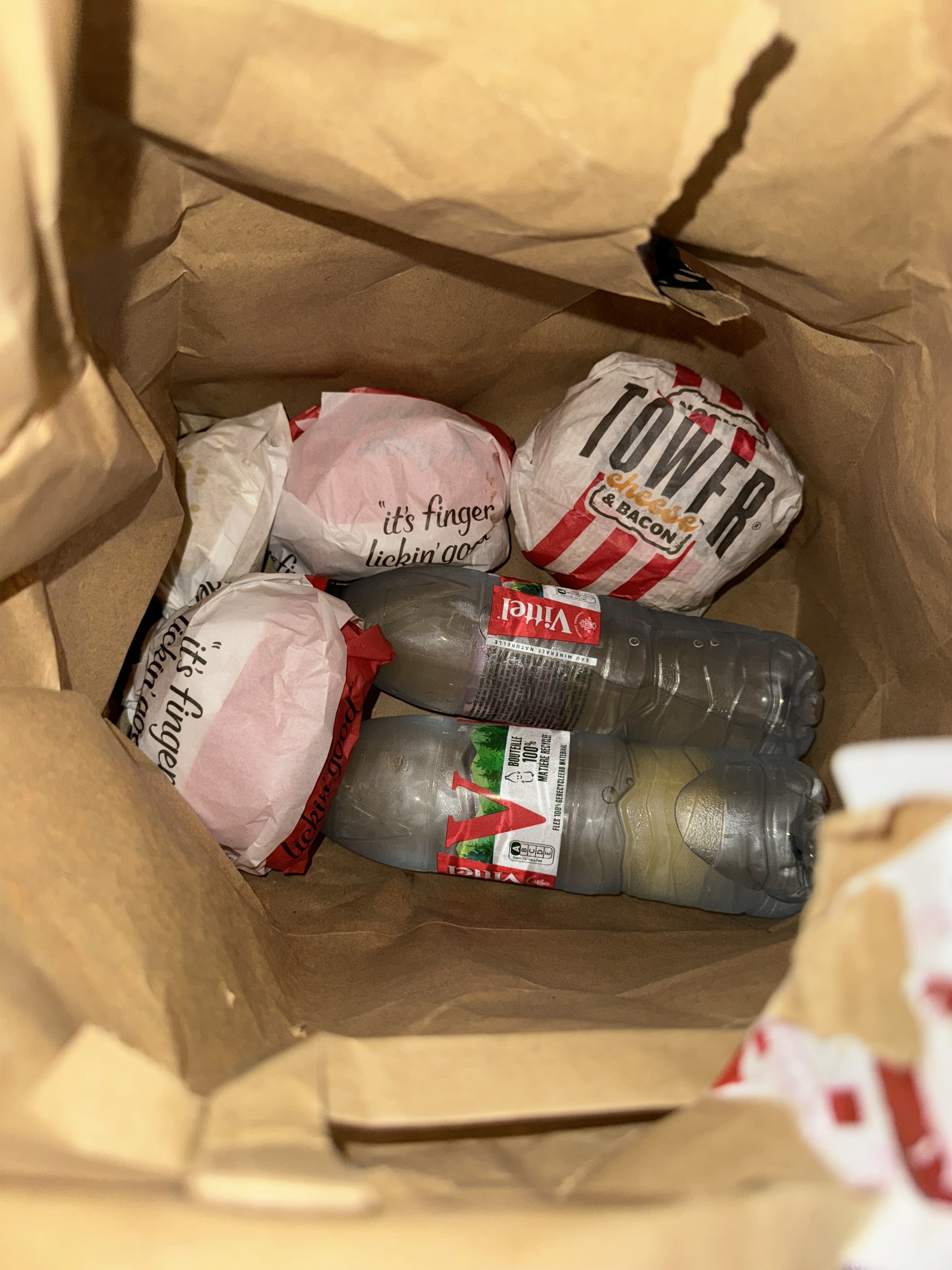 Si l’on fait abstraction des plus de 30min d’attente pour un menu alors que pendant ces 30min seulement 8clients sont passé. L’hôtesse était très agréable et c’est excusé pour le retard de la commande. C’est d’ailleurs un des seuls point positif car quand on reçois la commande mise en vrac dans le sac ( sans petit sac de chaud, juste mis dans le grand sac de transport ) alors qu’il pleut dehors on se retrouve à devoir porter à la mains les sandwichs lorsque le sac c’est désagrégé au bout de 3minutes avec des emballages qui prennent l’eau et qui rendent la commande immangeable et rempli d’eau. Photo à l’appui. Très dessus surtout pour une commende a presque 18€ qui ne sera même pas manger.