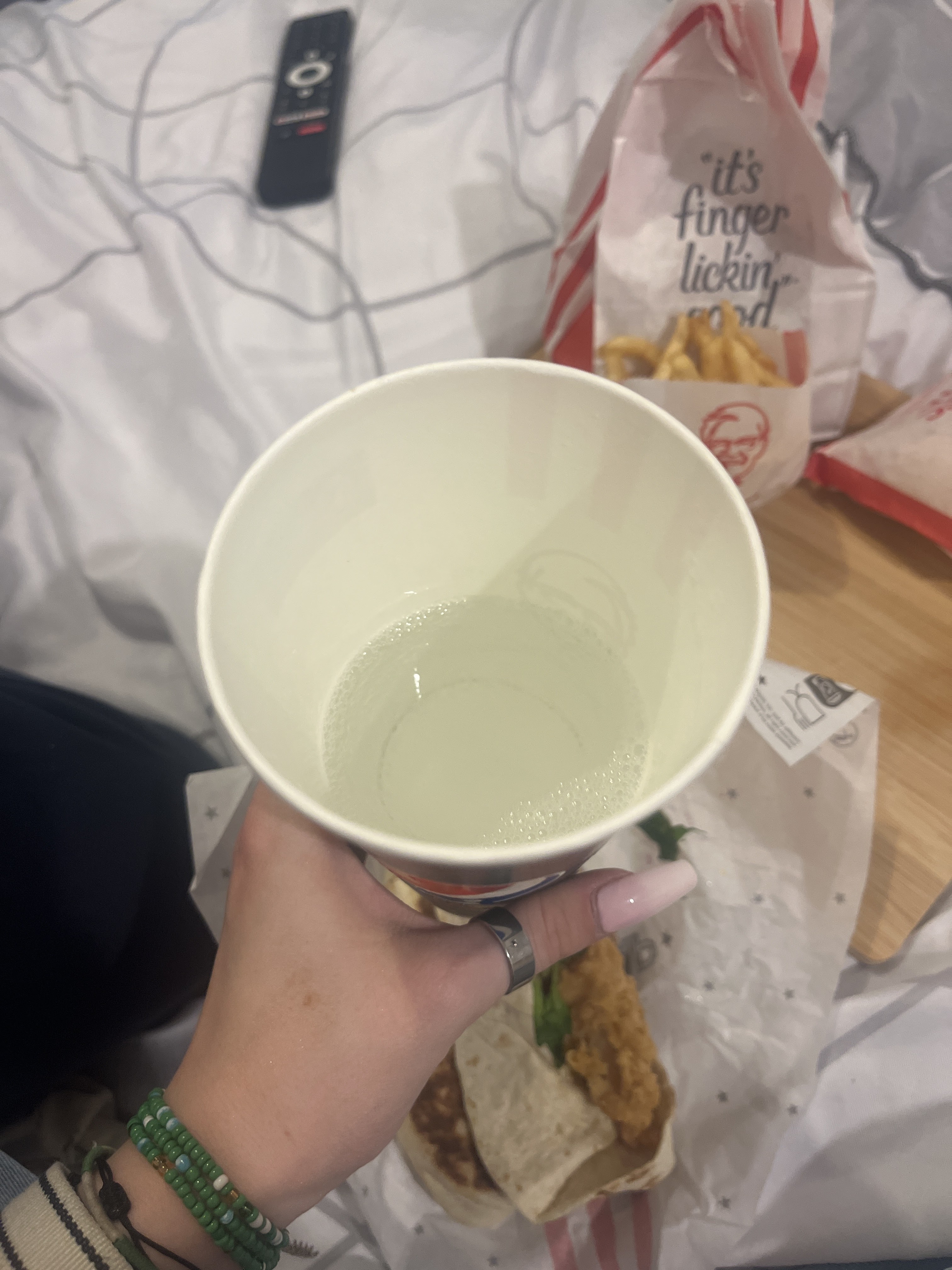 Bonjour, C’était le pire repas de ma vie, le repas arrive froid le fromage pas cuit ne parlons pas de la viande (de quoi a ce choper une bactérie) heureusement que je n’ai pas pris de poisson… Mais ça c’est n’est que le début parce que attention j’ai retrouvé dans mon verre je ne serais même pas dire quoi c’est mais une chose et sur ça n’a rien à faire dans mon gobelet… Je pense que je ne retrouverai plus au kfc c’est déjà la deuxième déceptions que j’ai eu avec le repas froid mais là la boisson c’était la gobelet de trop… Ps: Allez la France on va gagner cette coupe du monde