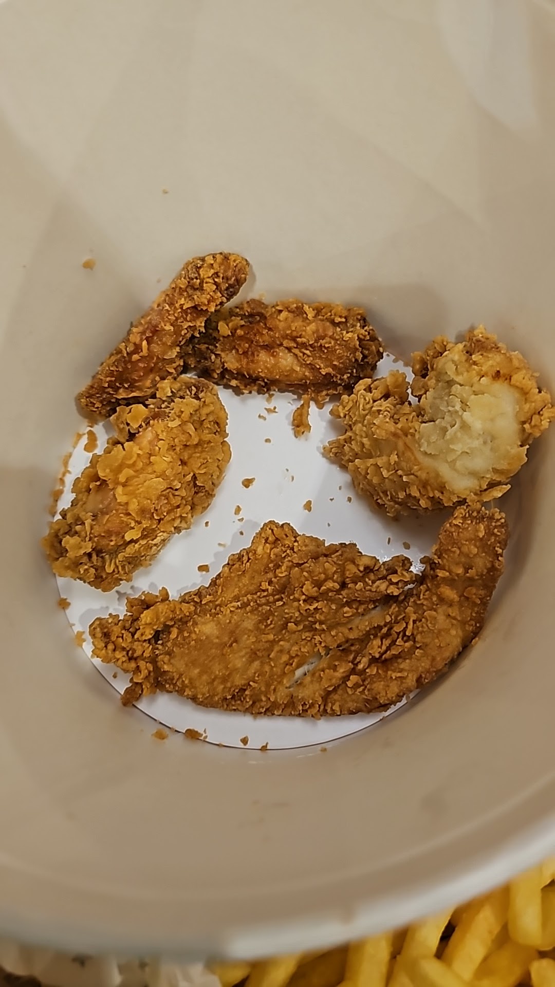 Habitué depuis de nombreuses années, je prend tout le temps un sceau 2 personne mix, ce soir nous avons eu la surprise d'avoir des tenders aussi épais que des chips.. Les 7 tenders était tous très fin, le morceau de poulet est 2x fois plus leger que les précédents, mais le prix reste le même Je viens chez vous pour vos filet de poulet, j'espère que c'était une erreur d'un soir et non une nouvelle habitude.. SUITE APRÈS PLUSIEURS MOIS : Les morceaux ont vraiment réduit, j'ai même l'impression qu'ils sont encore plus petit que le jour où j'avais pris ces photos.. C'est triste, je ne reviendrais pas Et la réponse de KFC me demandant de les appeler, c'est hors de question, je suis pas là pour me faire acheter avec des paroles, j'allais dans tous les cas finir par avoir ma réponse, au final ce n'était pas un problème de qualité, mais bien un changement mesquin pour votre rentabilité !