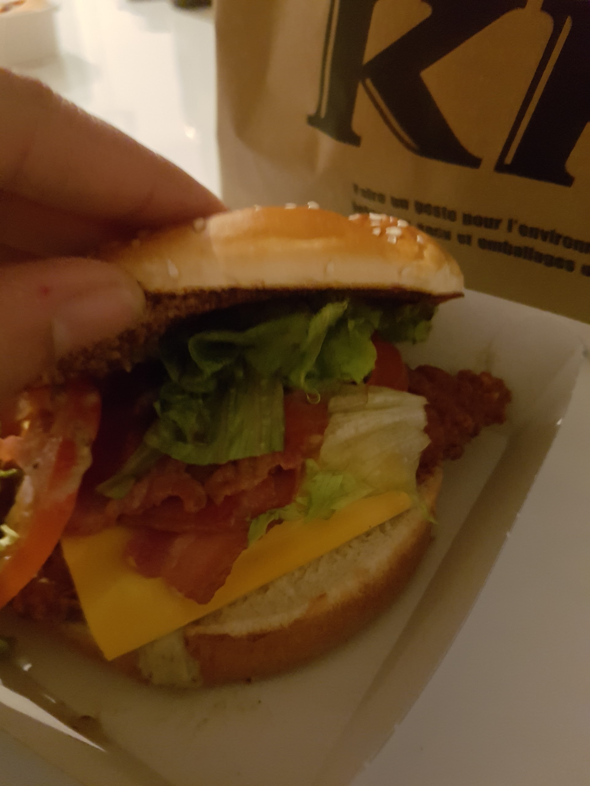 Huile de cuisson clairement dépassée. Le goûts du poulet frit n'est pas celui dont j'ai l'habitude au KFC. De plus mon sandwich tower baignait dans l'huile donc soit le poulet est resté trop longtemps dans de l'huile pas chaude, soit ancien sandwich qu'on m'a servi. A peine tiède d'ailleurs ! Bref... Changez votre huile !