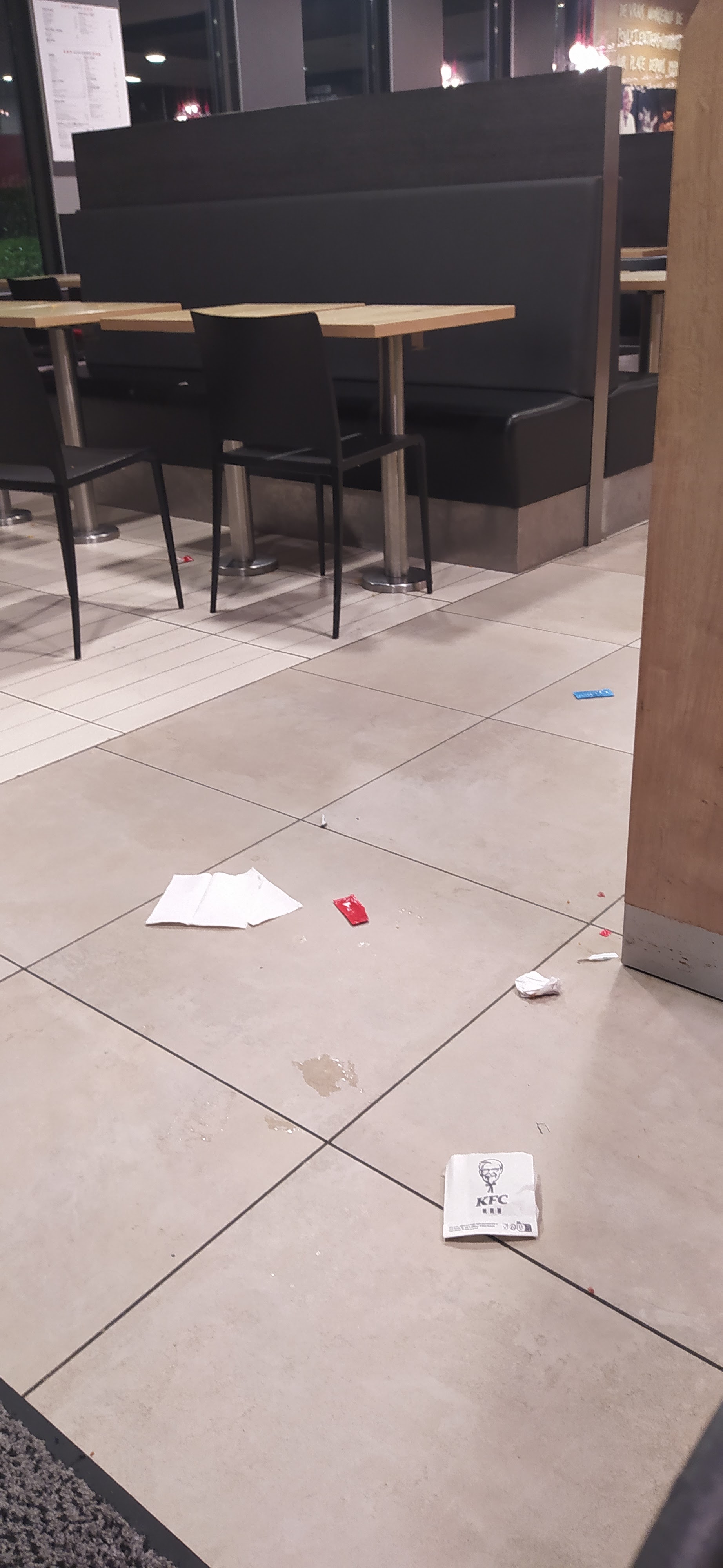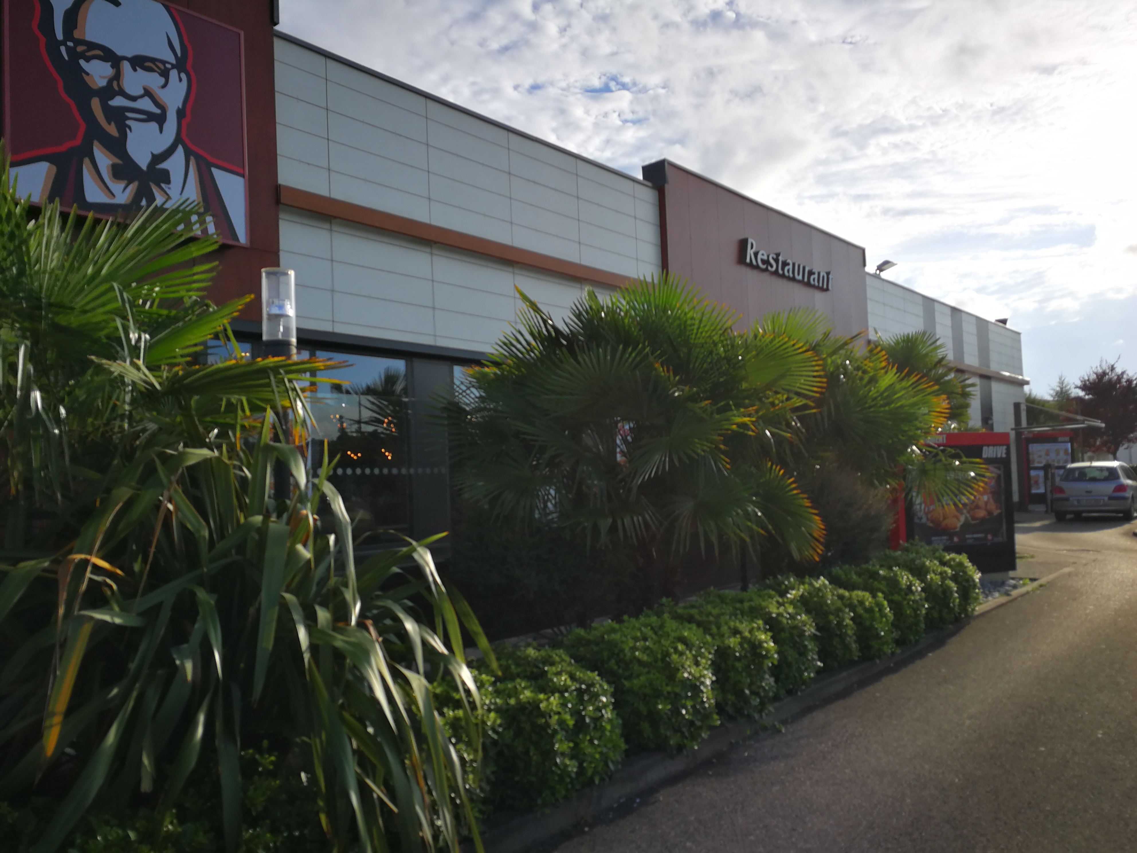 Extérieur espace vert,plus nettoyage et abords sans entretien....quand au ''merdes d'oiseaux à l'extérieur...n'en parlons pas .il est facile de mander contact sur une adresse mail pour agir au lieu d'agir.....ce KFC extérieurement est crade.....et quand on passe l'après midi rares sont les clients donc profitez pour nettoyer........