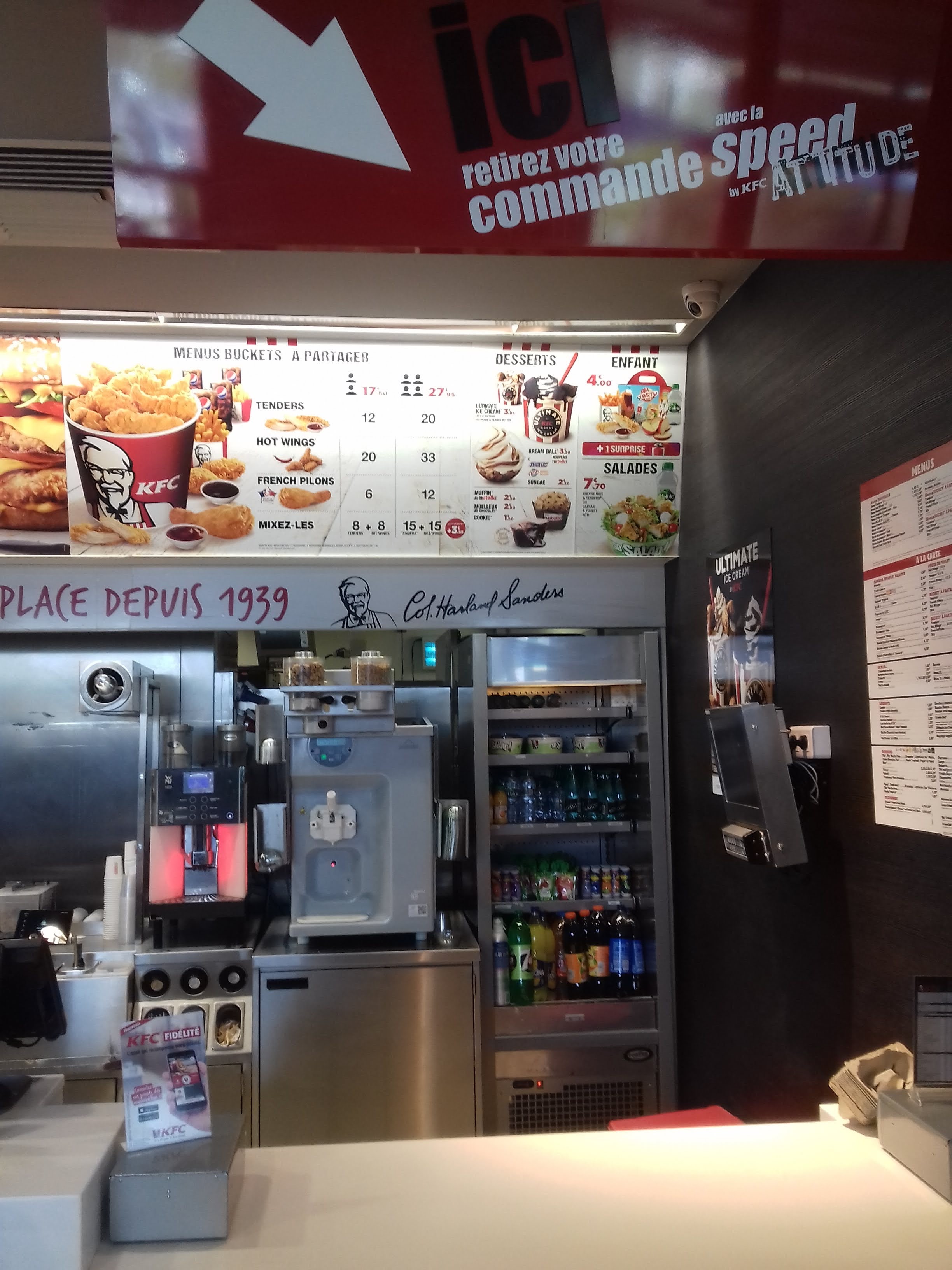 Pas grand chose à dire de plus que c'est un KFC comme un autre. Il n'y a eu aucun soucis entre ce que nous avons commandé et ce qui nous a été servi (ce qui est souvent un soucis récurrent dans les fast food...) La nourriture était correcte, sans plus mais pas mauvaise, du niveau d'un KFC.