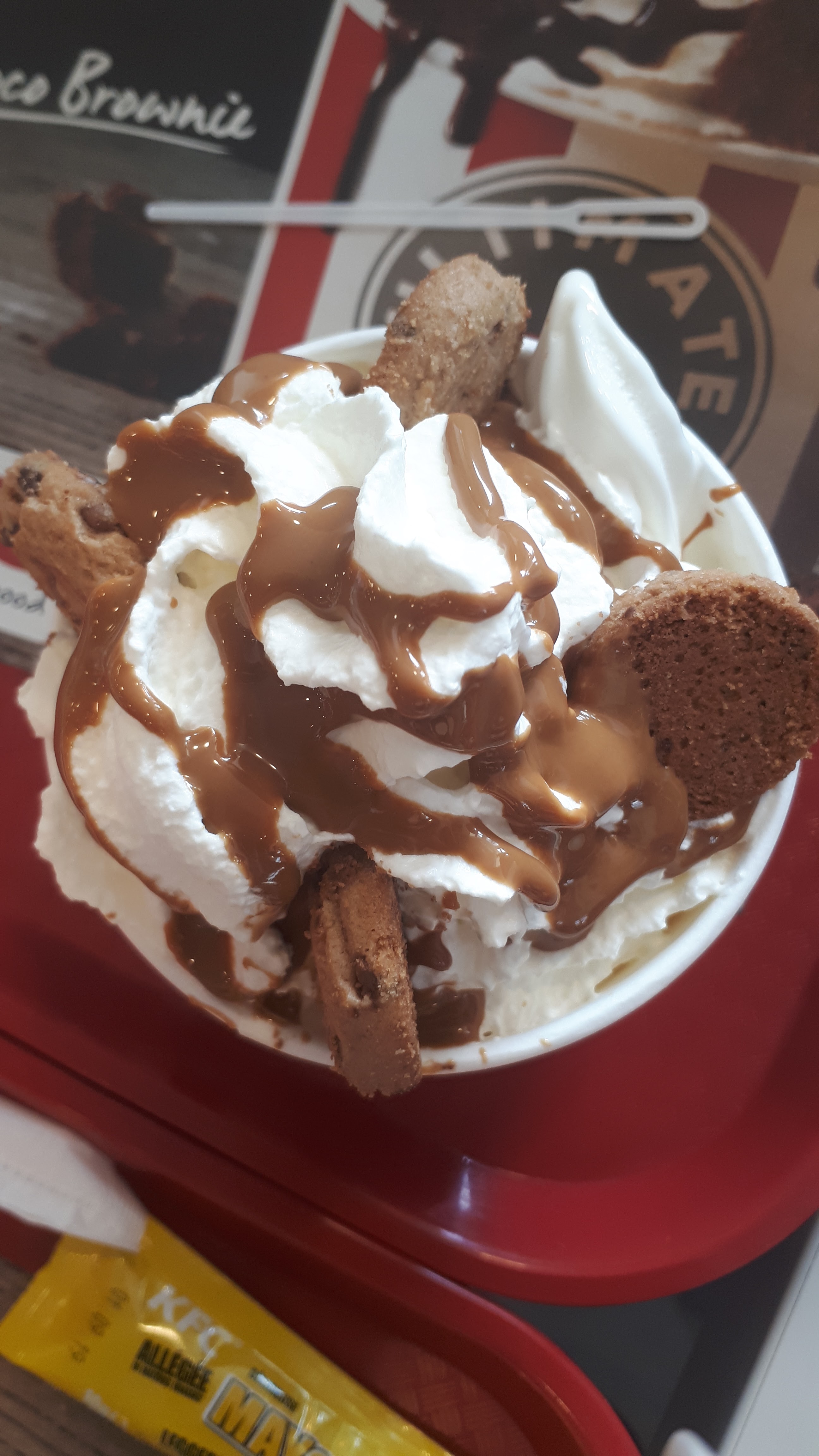 Une équipe au top du top, rien à voir avec l'autre KFC! Celui-ci te sert des menus chaud, font des frites croustillante et comme vous pouvez le voir sur la photo.... des glaces comme il se doit! Vous savez ou manger KFC maintenant... 👍