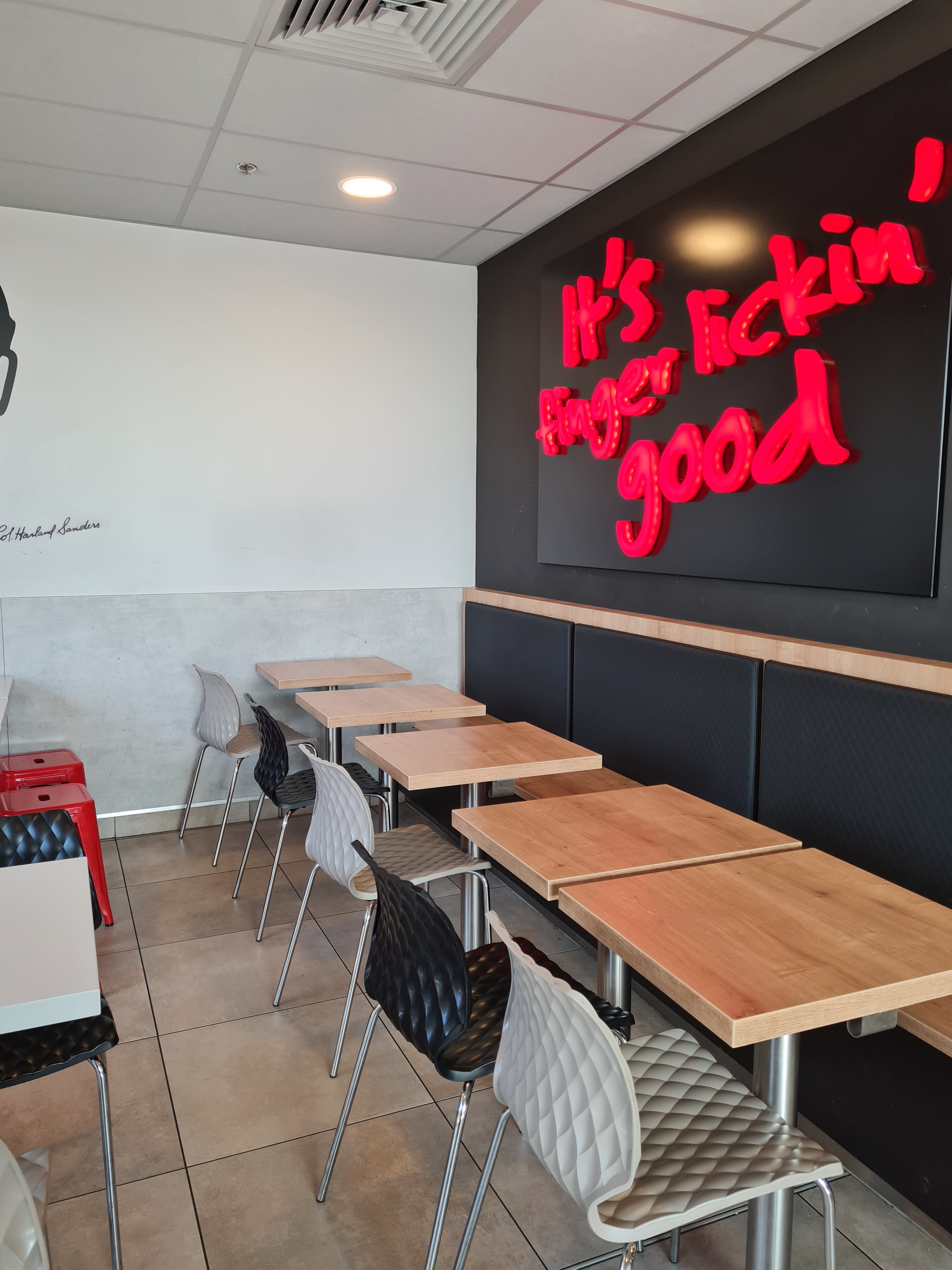 Nous y sommes aller après une bonne journée shopping. C'était ma 1ère fois d'un un KFC et déçu ! Les lieux était sale mais vraiment sale ! Il y avait plus de nourriture par terre que sur les plateaux. Les tables pas laver. Les toilettes par chance étaient dans un état moyen j'aurais peut être dû manger là. Vraiment déçu.