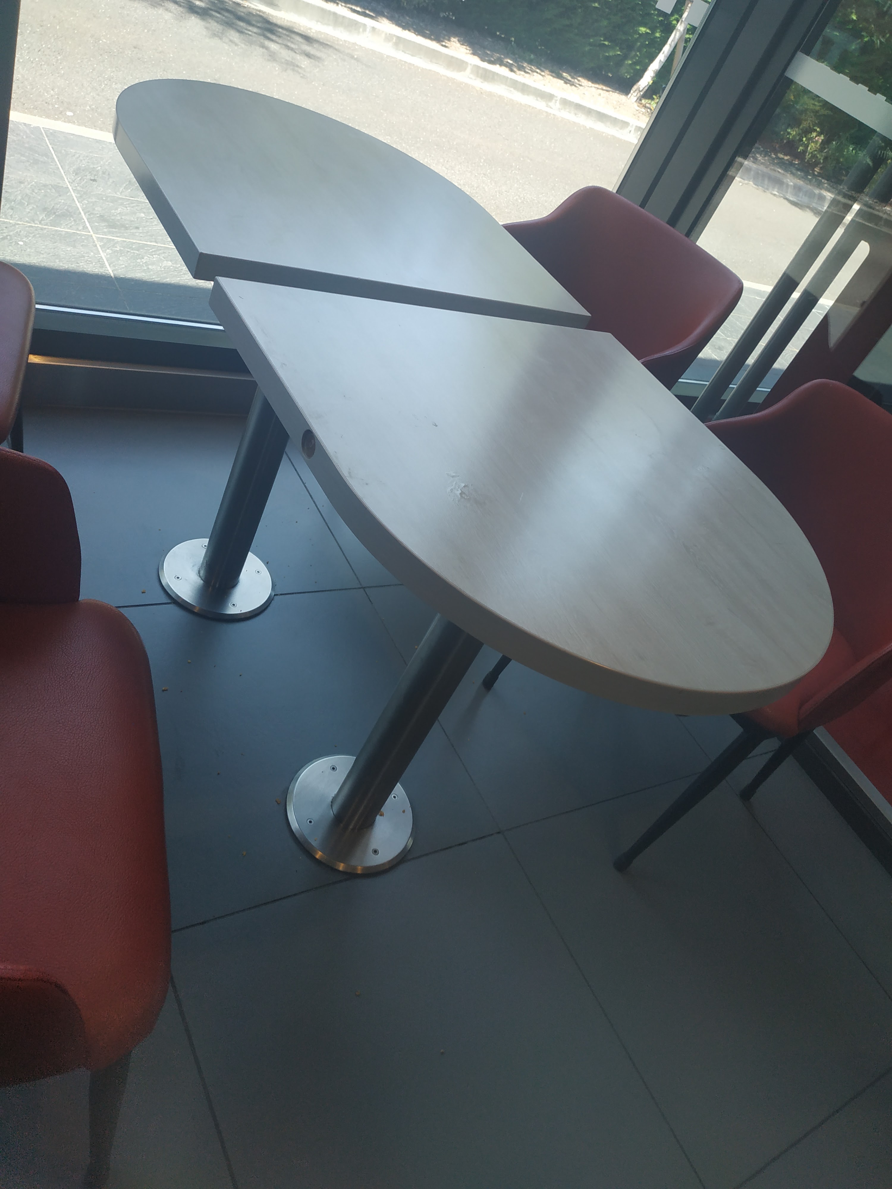 Déplorable, aucune table de propre après avoir fait le tour du restaurant intérieur & extérieur!!! Entre les crachat etc sur les tables compliqué de se faire de la place. Obliger de demande à un équipier du restaurant de nettoyé une table, vu comment il a traîné des pied, cela ne doit pas souvent être fait!!! Pour preuve ce jeune homme a mis un coup sur la tables et mettant tout sur les bancs mais cela ne le gêne pas et laisse dans l’état. Moitié de la commande, ont nous demande de partir avec ce qu’il y a et de revenir plus tard, sauf que bon sur trois nous n’allons pas manger devant une personne qui attend!!! Résultat, poulets froid,frites froide ,pas de glaçons. Le respect et a réapprendre, ni bonjour, ni même un regard sans parler du au revoir. 21h00 personne en restaurant ni au drive, donc un petit nettoyage serait le bienvenues mais n’y penser même pas. Ils parlent beaucoup en mal de leur concurrent, mais chez eux tout est propre ;) Moi même étant gérant d’un garage, ont peut plus facilement manger dans mon garage, plutôt que sur vos tables et sol
