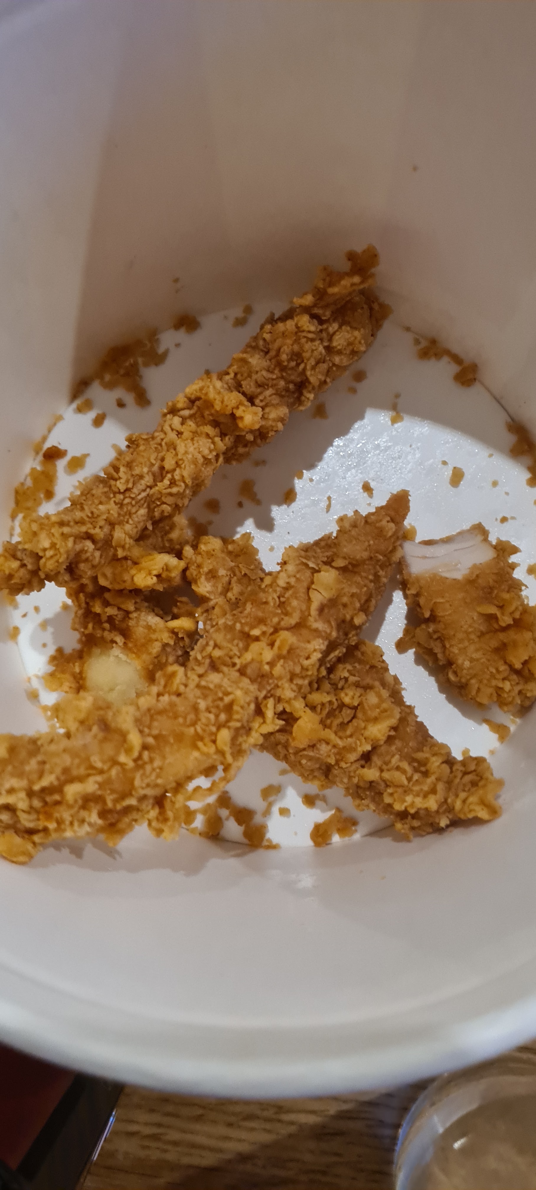 KFC Biganos c'est moi ou le filet de poulet est coupé en 3 morceaux maintenant ??? 20 tenders aujourd'hui c'est plus 6 d'il y a quelques mois. Les temps sont dur pour tout le monde mais de là à diviser les quantités à ce point c'est abusé... Un bucket pour 4 c'est plutôt du 2 personnes maintenant...