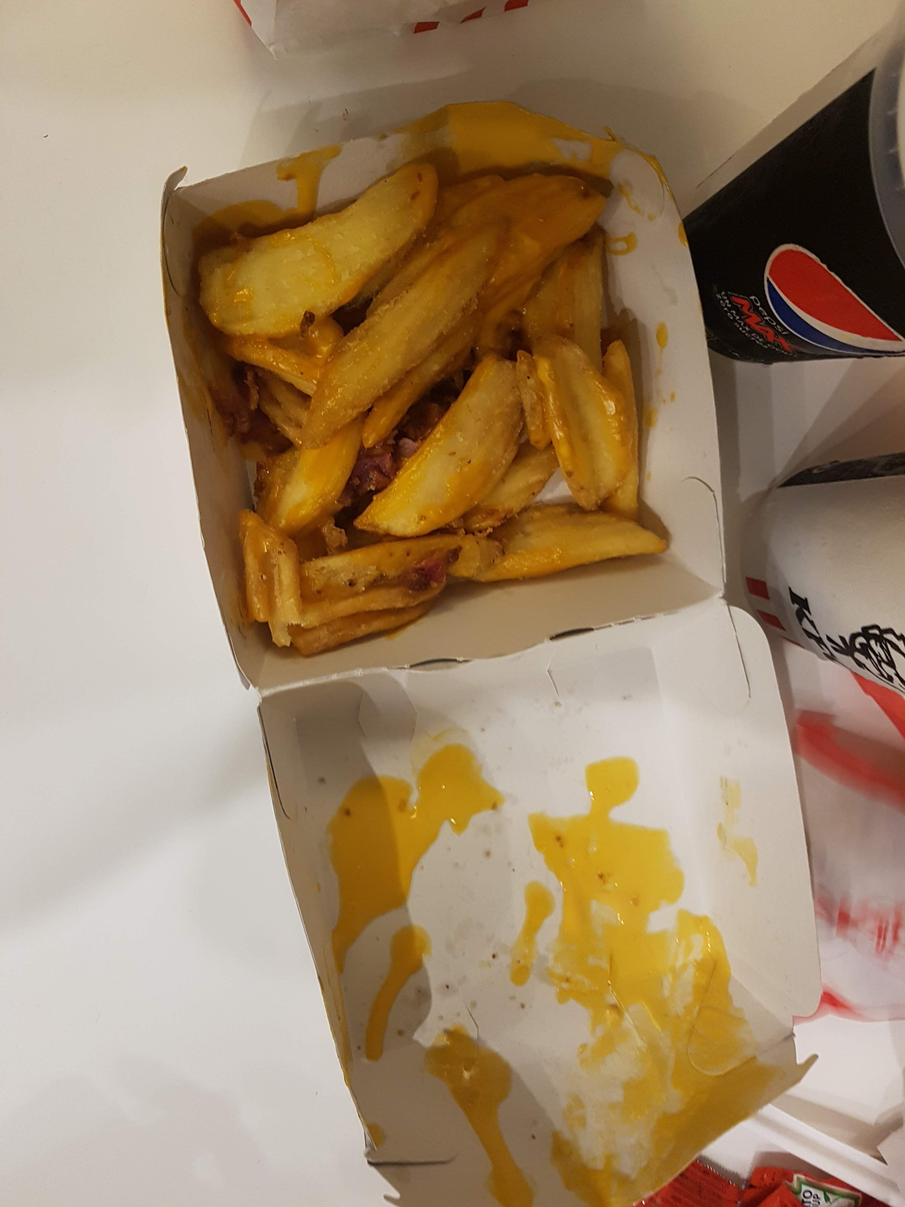 Franchement c'est de pire en pire le KFC entre la prise de commande ou on ne nous entend à peine on est obligé de s'exprimer plusieurs fois le retour de la personne est presque inaudible. Ça fait plusieurs fois que nous venons c'est une vraie catastrophe à chaque fois les burgers sont froids il manque toujours quelque chose c'est un vrai scandale. Aujourd'hui nous avons pris le burger Tower raclette.. nous récupérons les sandwichs presque froid le fromage à raclette n'est absolument pas fondu.. on dirait qu'il sortait du frigo ⚠️⚠️ nous avons commandé des frites winter raclette que nous avons demandé sans bacon et là... surprise !! nous avons eu du bacon à l'intérieur franchement c'est vraiment un scandale ce restaurant. Frites presque froide. Il faut vraiment éviter ce KFC ils en ont rien a faire des clients et des avis. Dommage car la serveuse au drive était très agreable. Je recommande pas. C'est bien de demander au jeunes de mettre 5 etoiles en échange d' un sundae mais après ce burger et frite froide vous pouvez vous le garder.