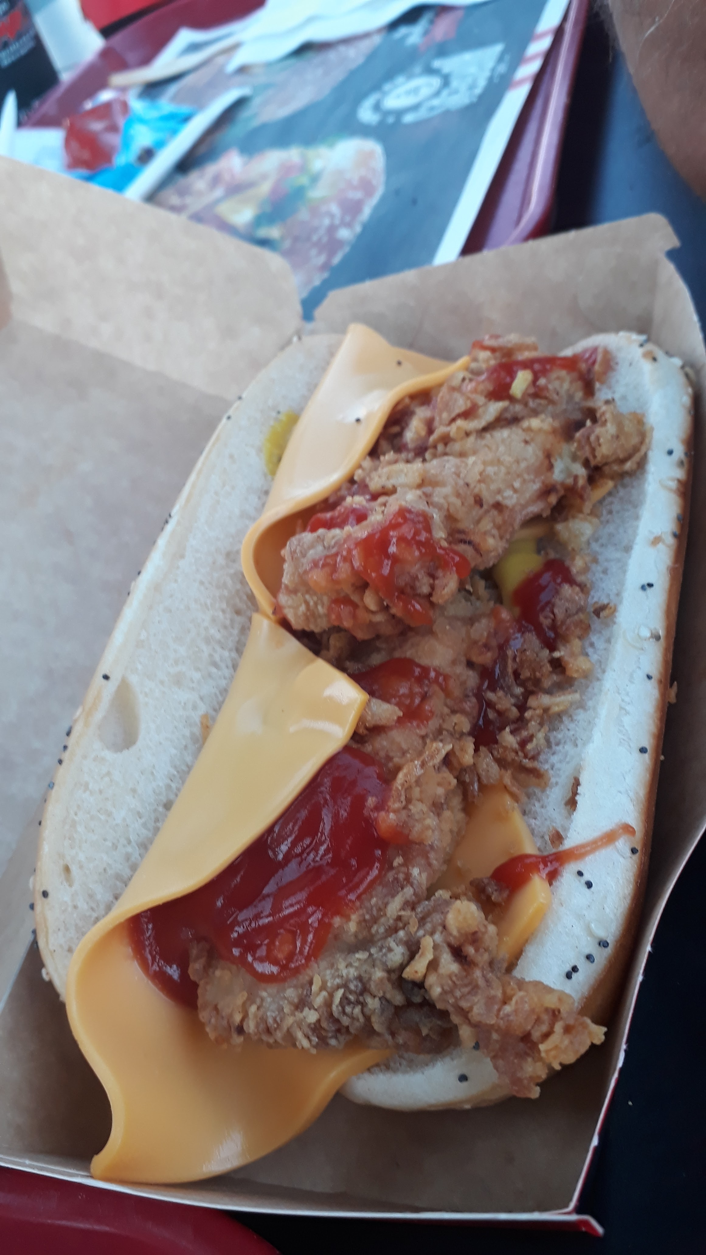 Des sandwichs froids et sec avec l'impossibilité de les faire réchauffer. Un sentiment de culpabilité en nous disant on va être obligé de les jeter, enfin bref, cela faisait longtemps KFC et je dirais à dans très longtemps.