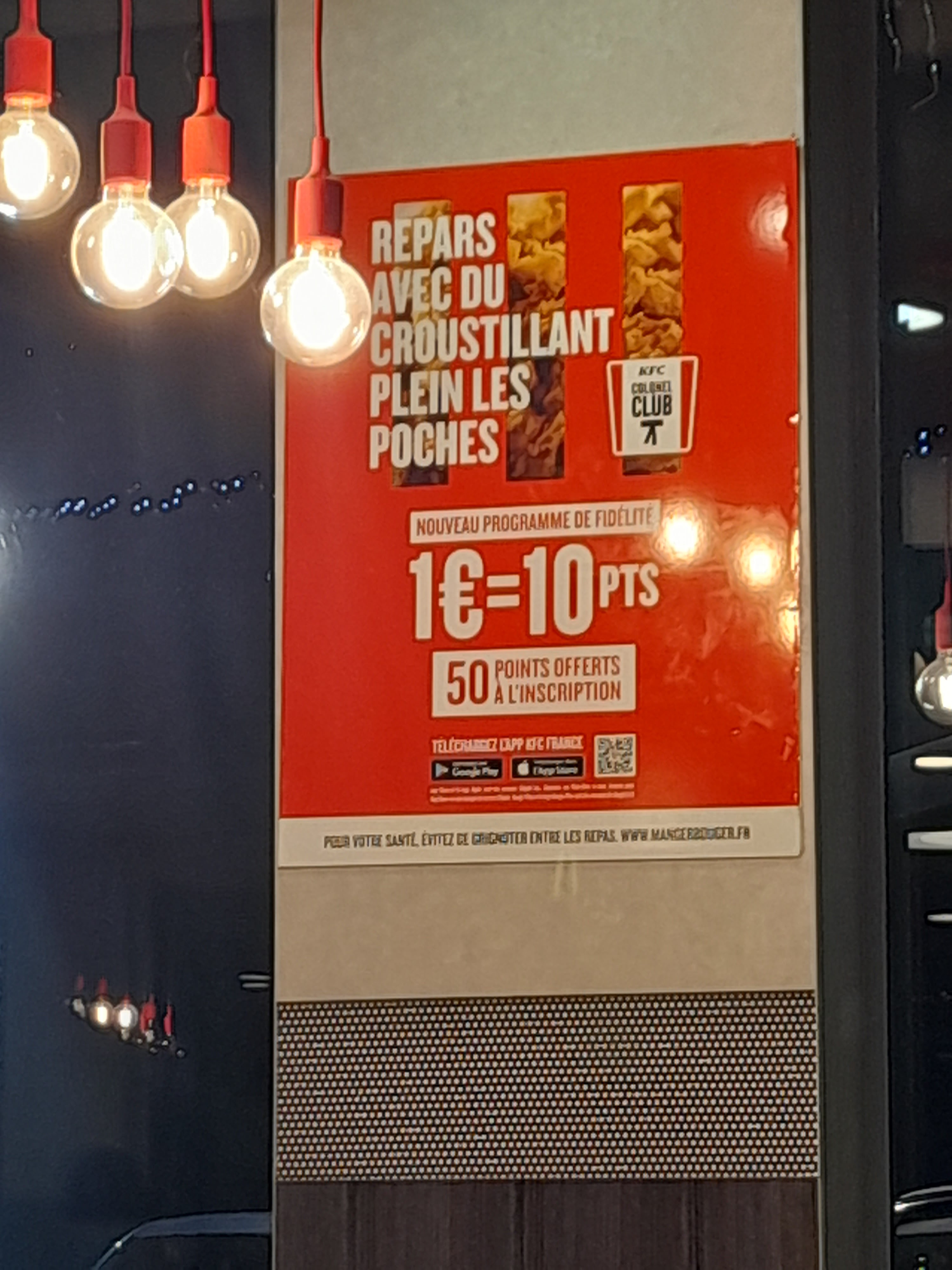 Un kfc qui ne se prend pas la tête avec votre carte de fidélité si elle ne passe pas . Le directeur qui envoie promener ses clients. Je ne recommande pas du tout. Allez chez Mac do l acceuil y ai 100 fois meilleur !!!