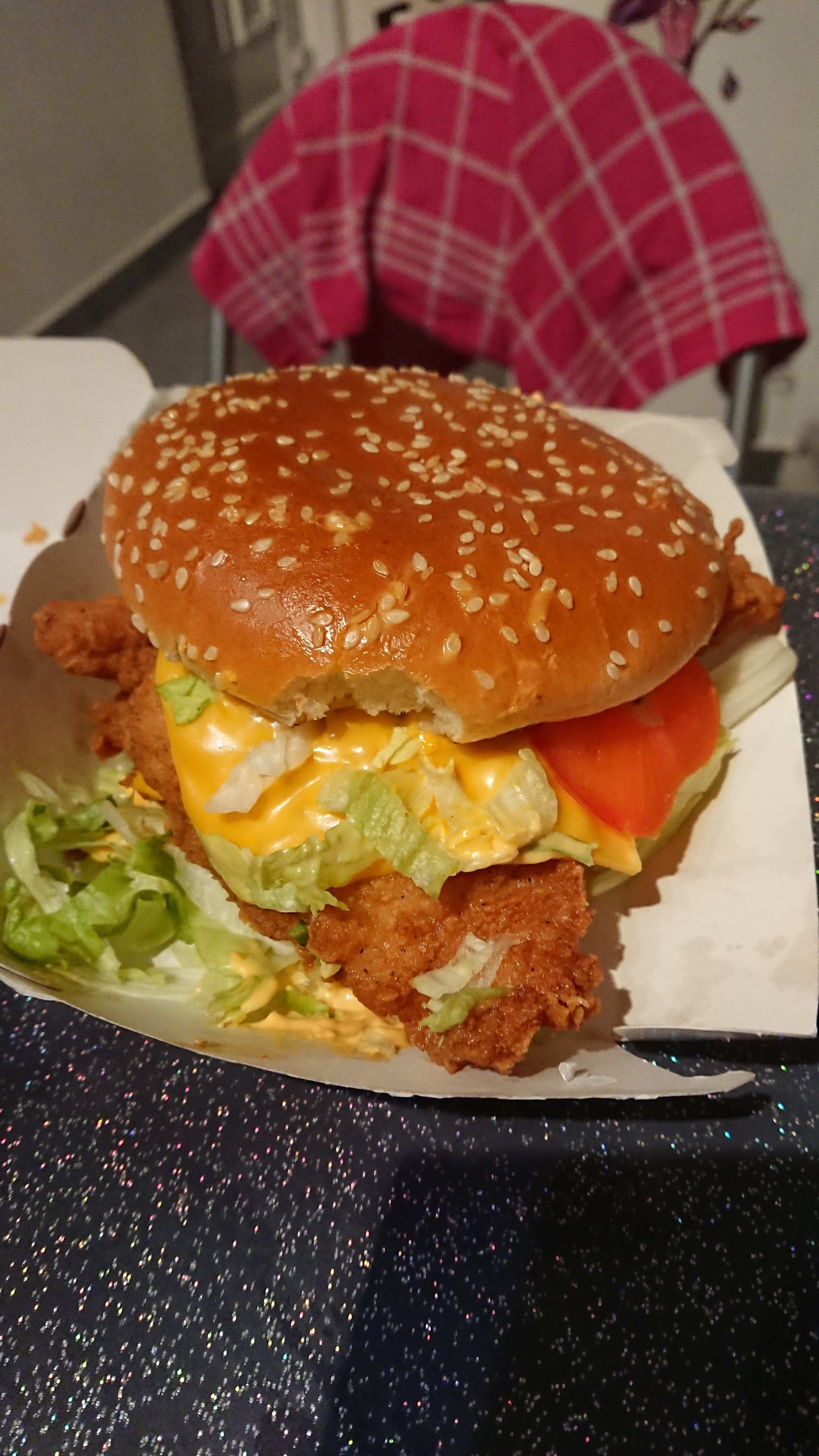 Accueil décevant , longue d’attente pour rien ,quelques problèmes avec la commande . Quand j’ai reçu la commande le sac était mouillé mes boissons c’était renversé , frite froide et dure mais le poulet était bon. J’ai aussi commander le truc au fromage 3 pièce pour 2€ c’est un peu cher pour quelques chose qui n’a même pas la taille d’un babybel est l’intérieur était vide . Dans le menus à deux , j’ai pris un oasis et un seven up mojito , dans le seven up une saleté été inclus et il n’avait pas le goût d’un seven up mojito je suis déçus l’oasis était bon sans problème .