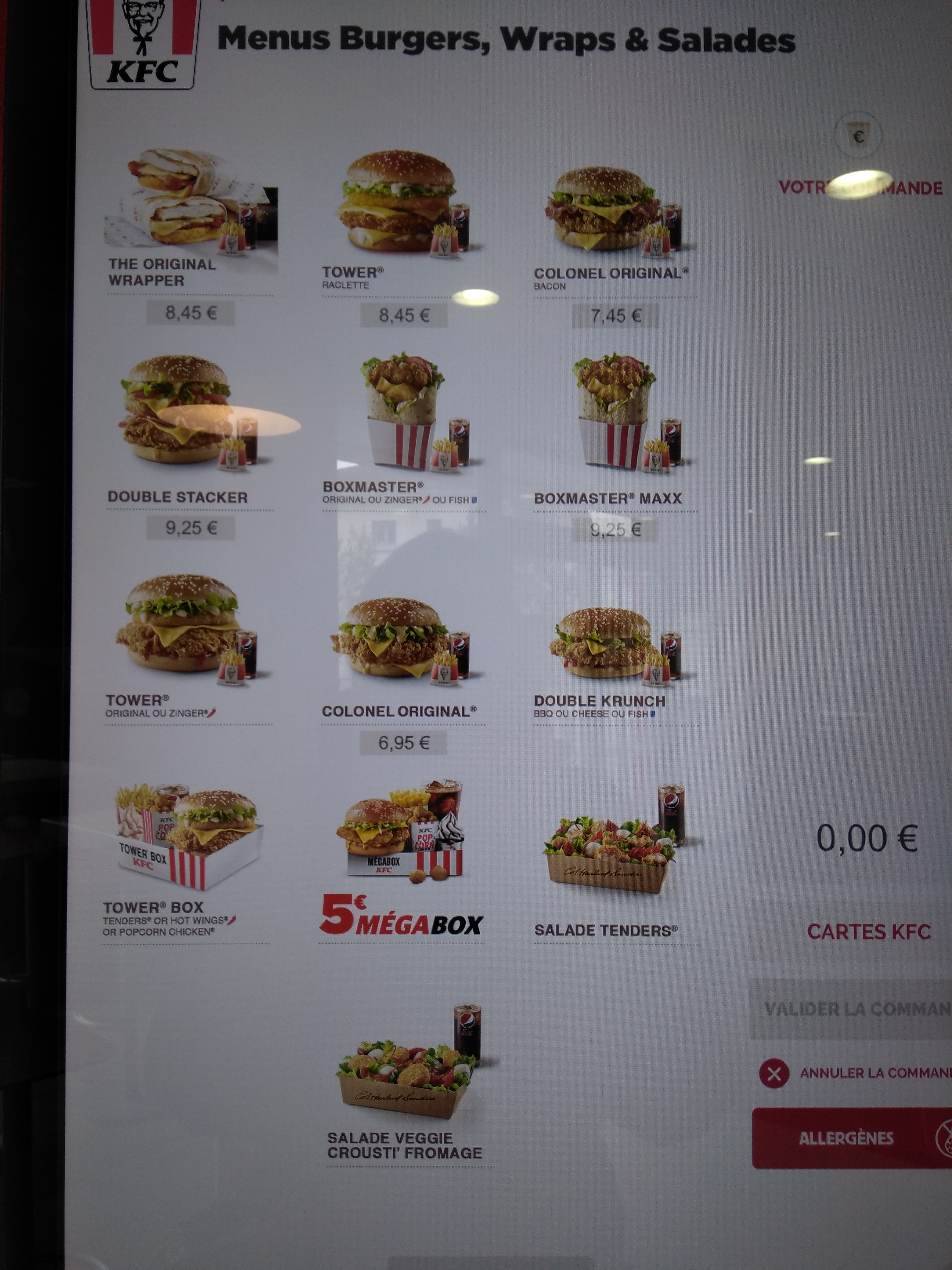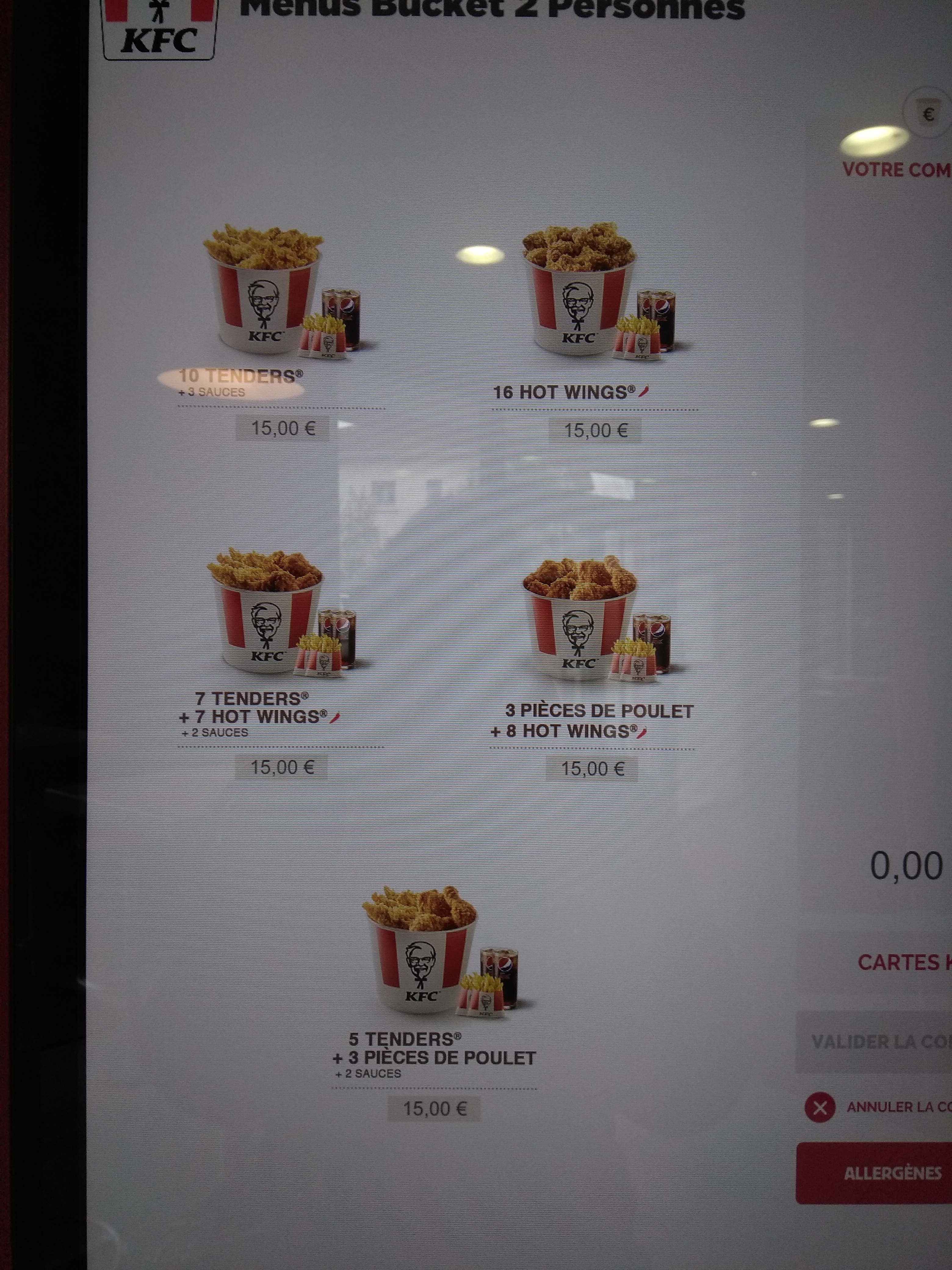 sans parler de l’augmentation des prix en général, on va se concentrer sur un grand combat mener par ce KFC pendant ses rushs : KFC vs la médiocrité, dernière qui doit être épuisée de vous mettre une vitesse tous les jours. c’est inadmissible de servir des frites dégueulasses + des boissons sans gaz alors que des tests sont à faire + des oublis dans les sandwichs. sans compter du fait que le télephone est hors ligne parceque sinon vous auriez trop de plaintes. on sait maintenant pourquoi vous avez 6 commandes par rush.