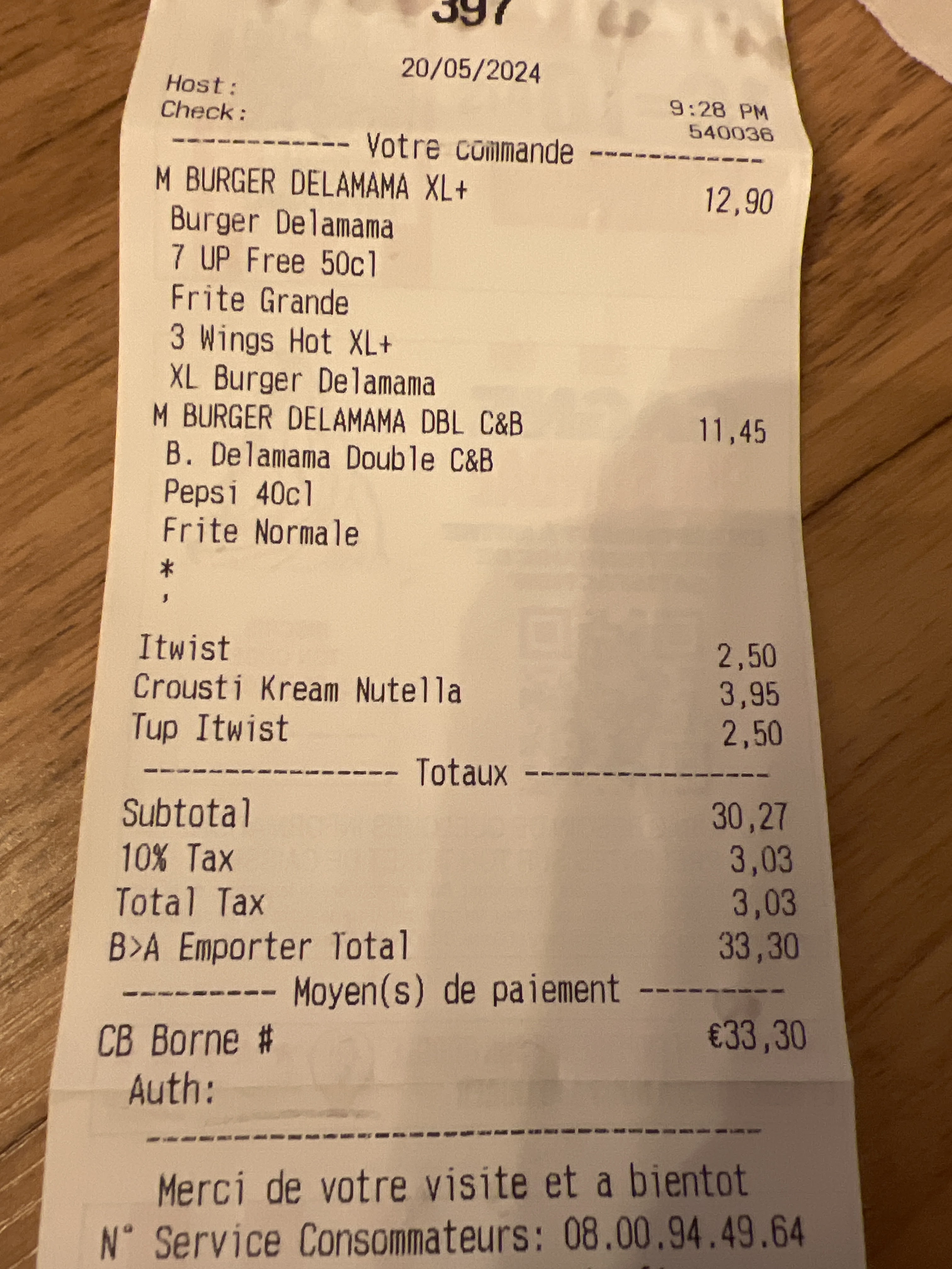 Passage le 20 mai au soir, commande d’une glace nutella, que l’on m’oublie. De plus, personne ne répond quand on essayer d’appeler le restaurant. Les équipes devrais se concentrer sur les commandes, au lieu de faire des concours de danse en cuisine.