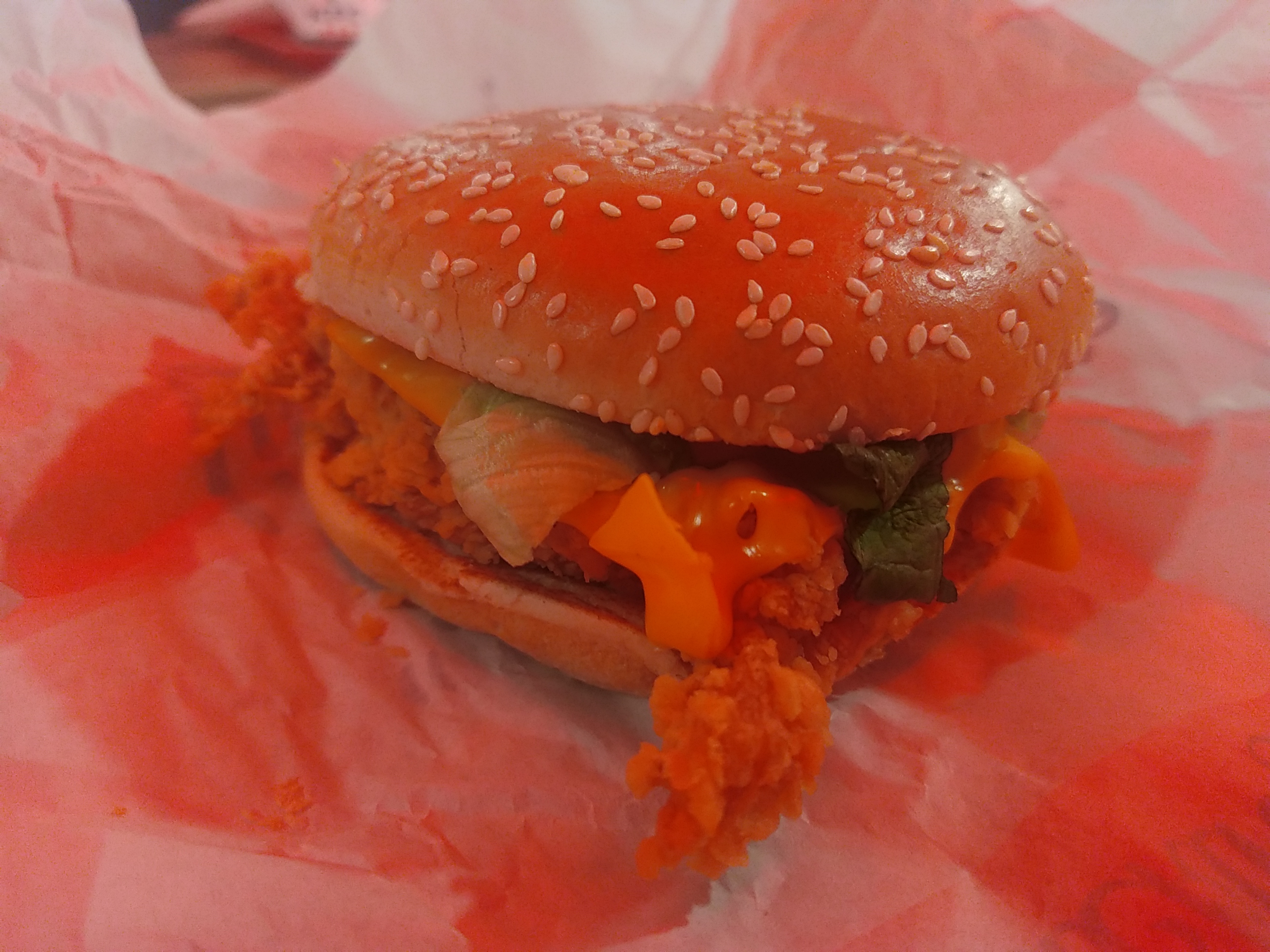 Voir photo....c était mon fromage dans l hamburger au poulet... J ai rien mangé . C était la première et derniere chez Kfc