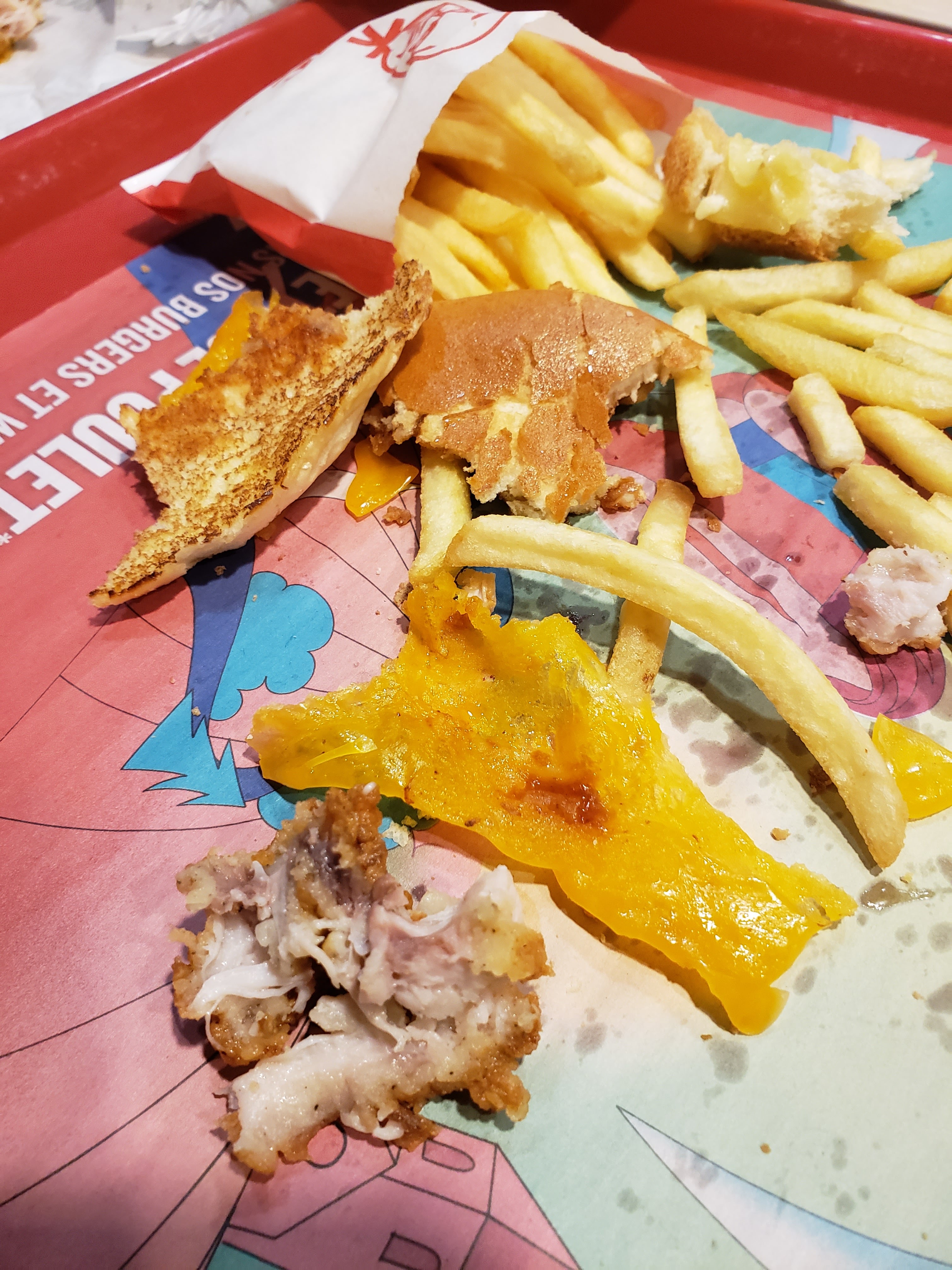 Poulet servi froid, frites froide, café froid et ça gêne personne ! Un petit tour au toilettes pas de papiers Ça donne envie de revenir 😬😬😬