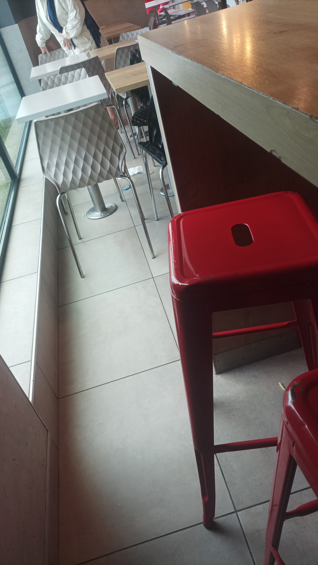 Très Sale ( chaise et table ) On piétine dans le sol mal essoré ( laver à midi quand les gens arrivent qu’elle mauvaise idée 😡 ) Trop de ventilation Je parle pas de la nourriture ( frites froides )