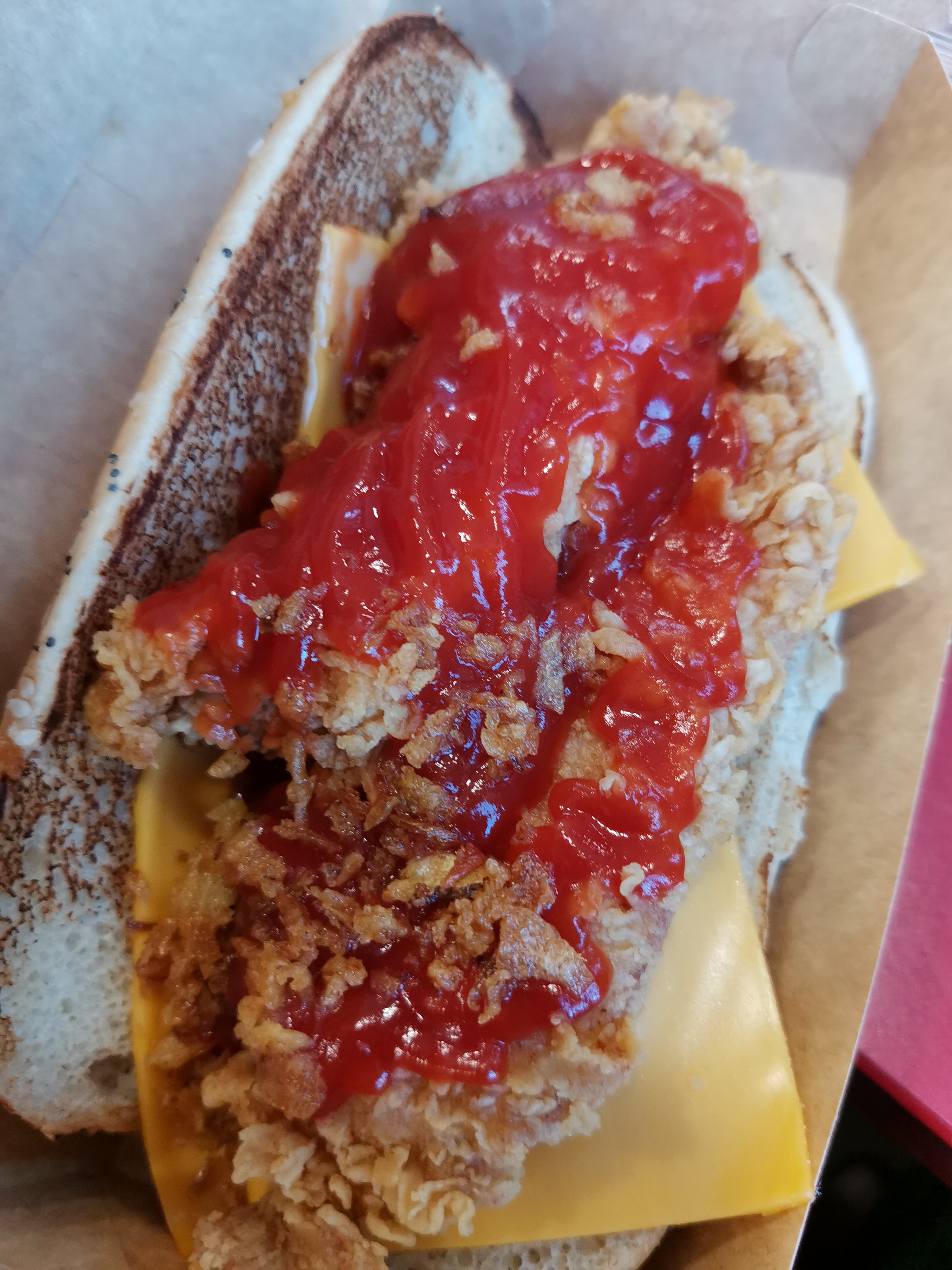 En pleine journée shopping,nous nous sommes arrêtés pour un petit creux dans ce KFC. Sandwich correct même si le poulet était trop sec à mon goût. Service correct. Attention hygiène des sanitaires extrêmement limite. Et aussi à quand la vaisselle réutilisable.