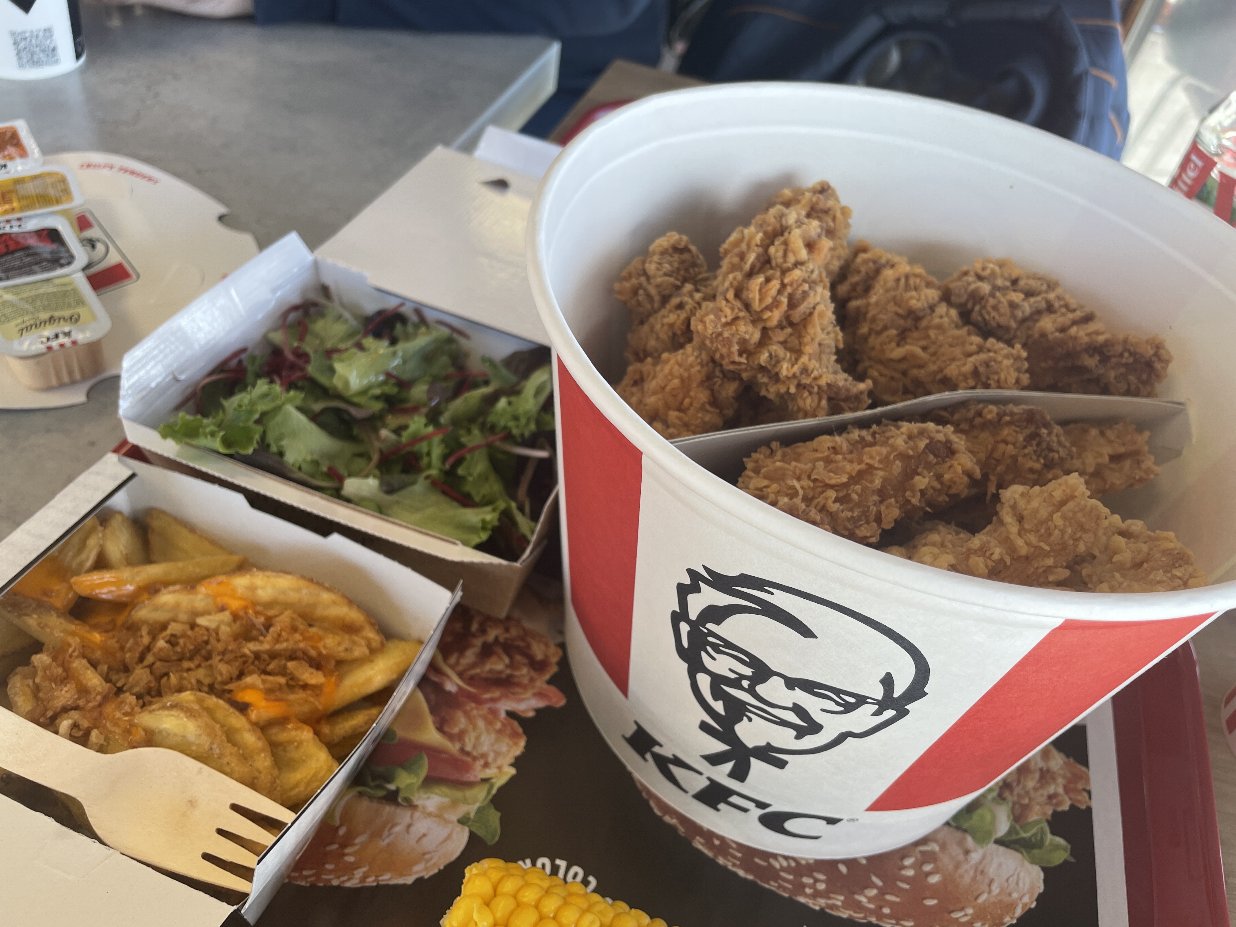 Première fois que je viens ici, totalement différent des KFC de chez moi, nourriture servie chaud ce qui n’est pas forcément le cas dans d’autre KFC quand je repasserais par ici je reviendrais !