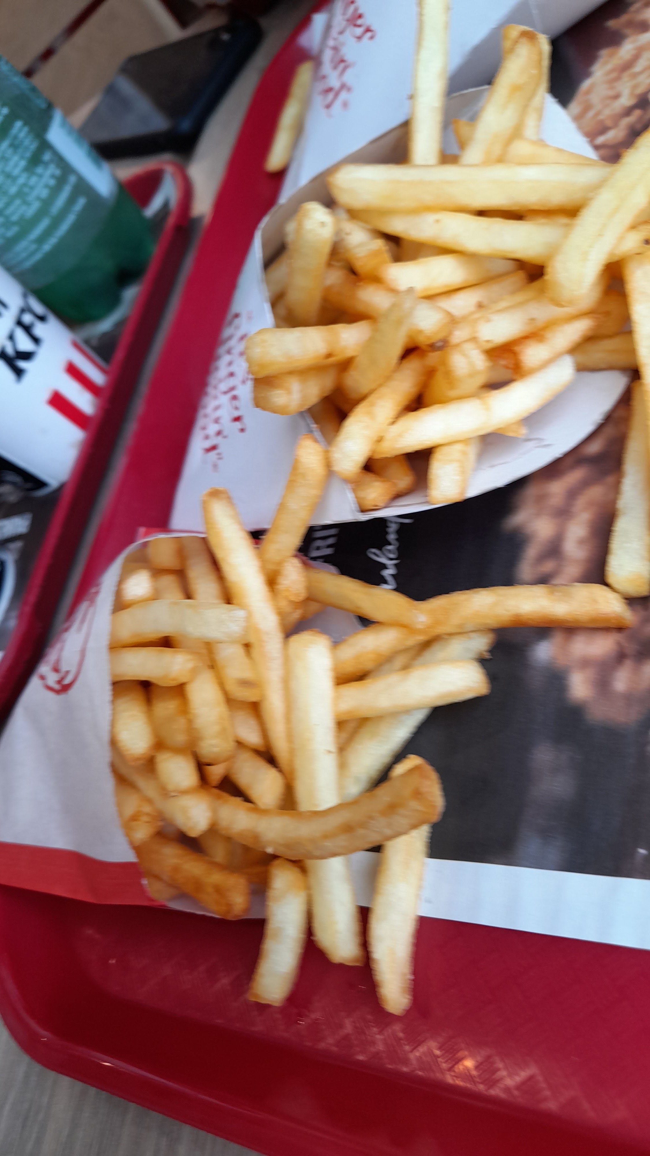 Le kfc en France le plus genereux que je connaisse pour les potatoes fromages et glace mon box master top, cuisine extra propre. Je fais deux kfc par mois en moyenne partout en France et même d'autres payes donc je connais bien les produits, là vous ne serez pas déçu. Un point à ameliorer le nettoyage des tables dehors moyen